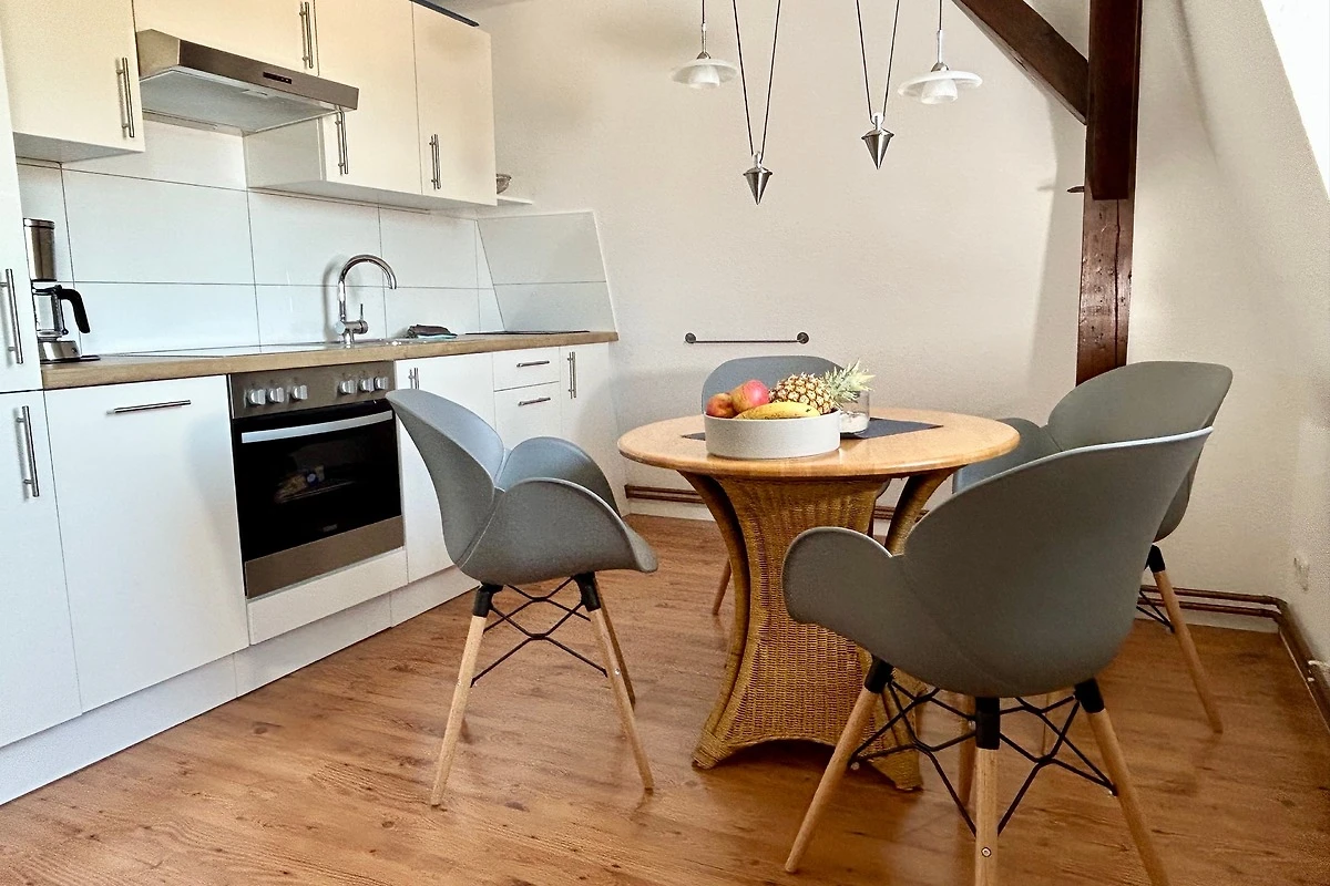Bei dem Badezimmer handelt es sich um ein Duschbad. Die Küchenzeile ist vollständig ausgestattet.