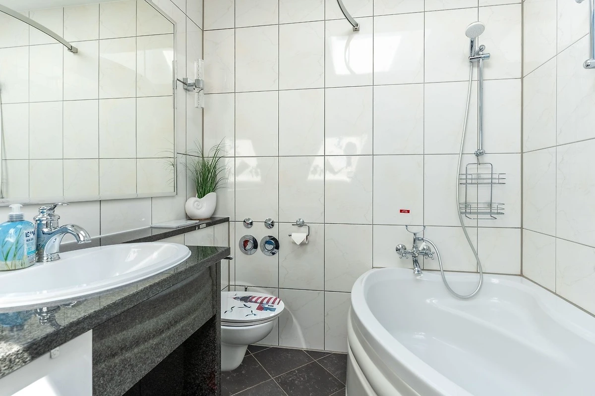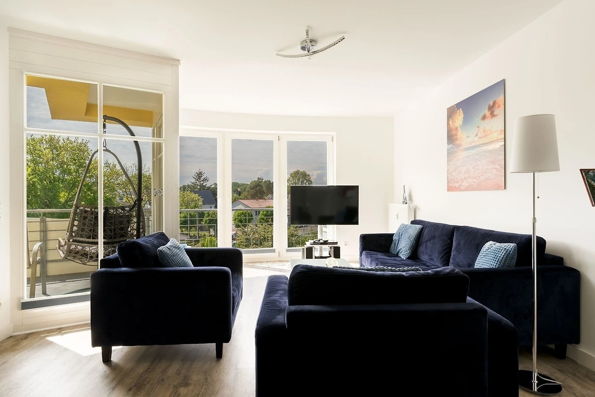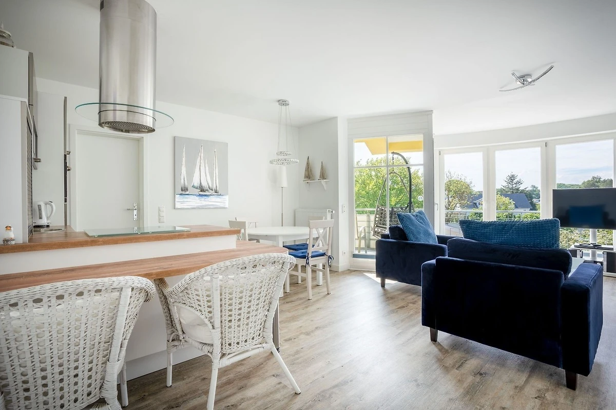 Das grosszügig geschnittene 3 - Raum Apartment ist 85 qm gross, für max. 4 Personen geeignet und besteht aus einem Wohnbereich mit Küchenzeile, zwei separaten Schlafzimmern sowie einem grossen Balkon mit Blick zum Schmachter See.