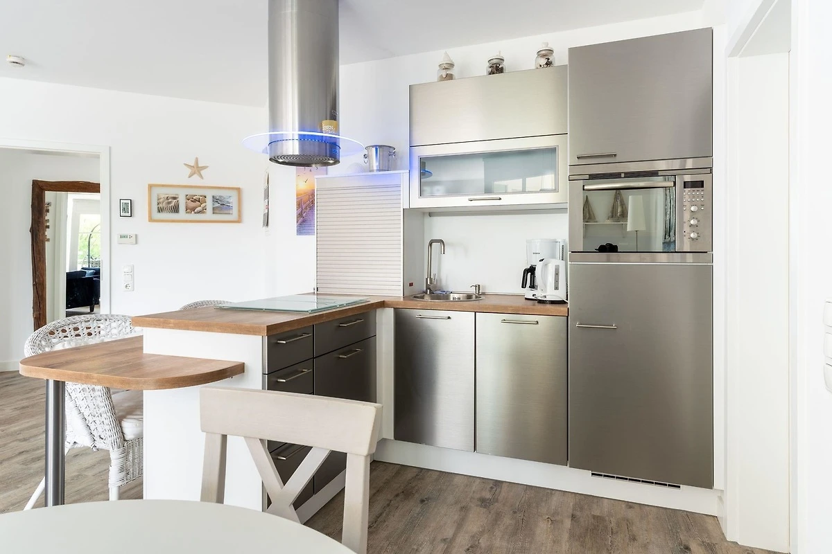 Die Küchenzeile mit Theke im Wohnbereich ist mit Cerankochfeld, Backofen mit Mikrowelle, Kühlschrank, Geschirrspüler und vielem mehr bestens ausgestattet.