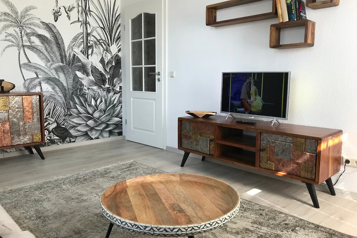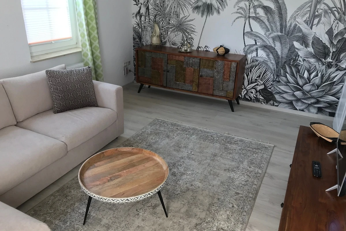 Das geschmackvoll, etwas oriental, eingerichtete Wohnzimmer ist das Herzstück unserer Wohnung, denn auf dem gemütlichen Sofa können Sie sich wie Zuhause fühlen!