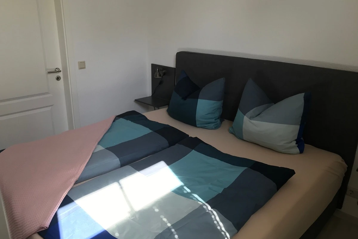 Das Schlafzimmer hält ein sehr bequemes Boxspringbett für Sie bereit, hier können sich bis zu zwei Personen wohl fühlen. Die vorhandenen Raffstores ermöglichen eine starke Verdunkelung. Ausreichend gemütliche Decken und Kissen stehen für Sie bereit.