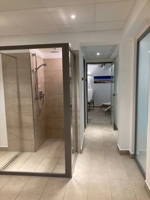 Das Badezimmer ist mit einer Dusche und Föhn ausgestattet, Bademäntel und Handtücher werden kostenfrei zur Verfügung gestellt.
