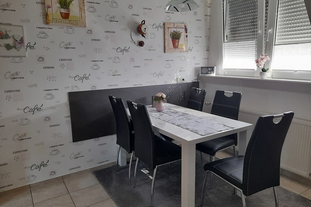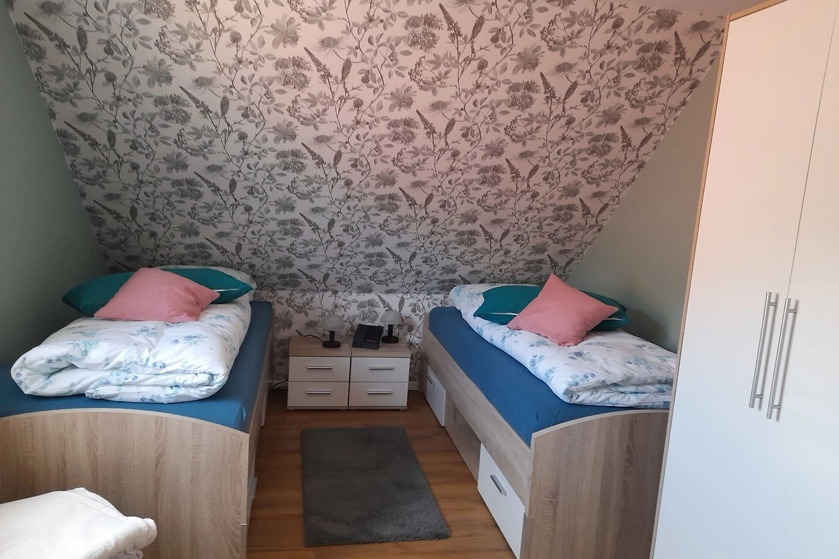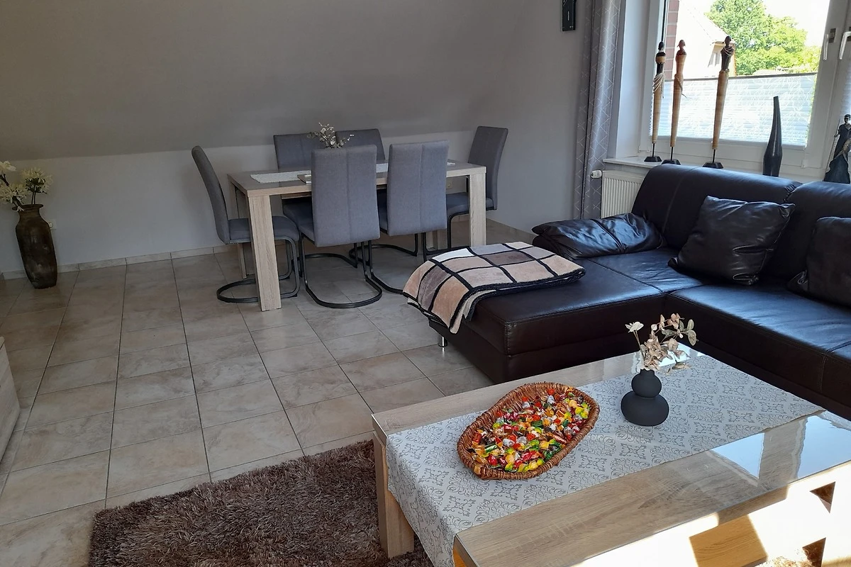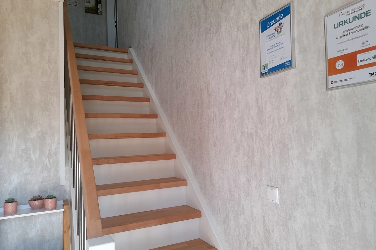 Angelikas Ferienparadies (Wohnung OG - Anni) bietet auf 85 Quadratmetern viel Platz für bis zu fünf Personen. Das grosszügige Wohnzimmer und eine seperate Küche sind komfortabel eingerichetet. Ebenso wie drei Schlafzimmer und zwei Bäder, die entweder mit einer Dusche oder einer Badewanne ausgestattet sind. Grosszügig angelegte Aussenanlagen garantieren unbeschwerte sommerliche Grillabende mit Spielmöglichkeiten für die Kinder.