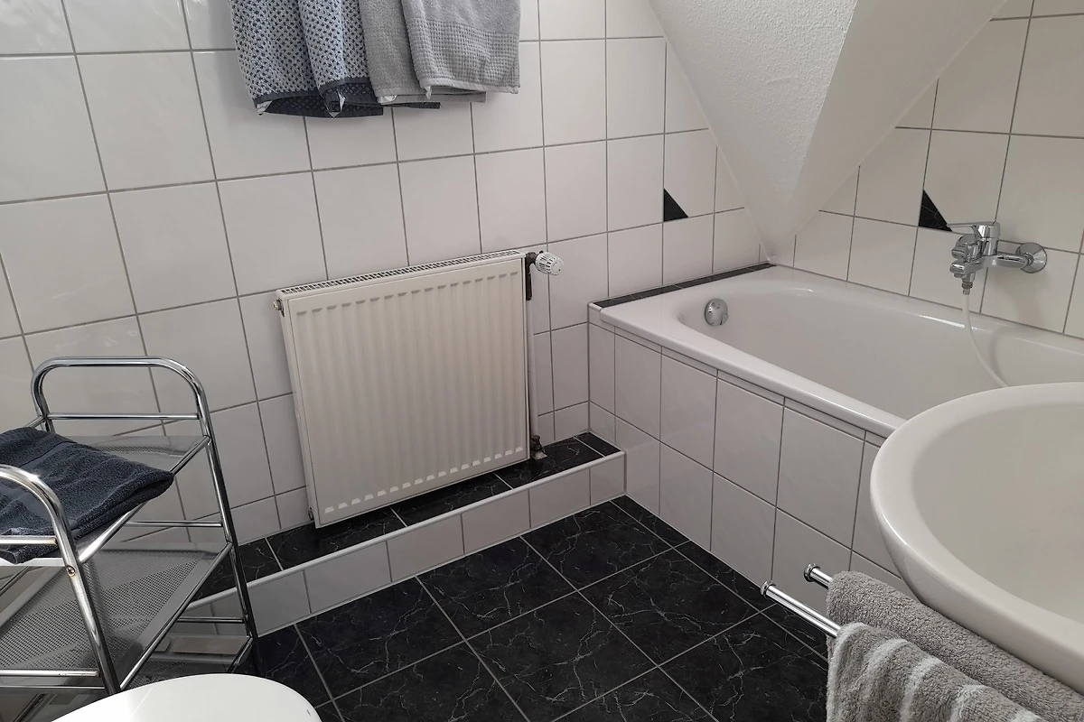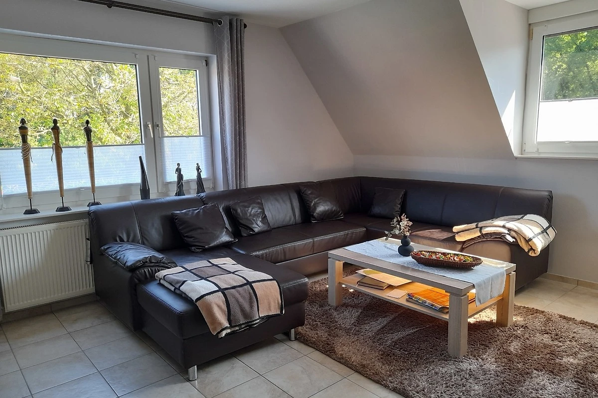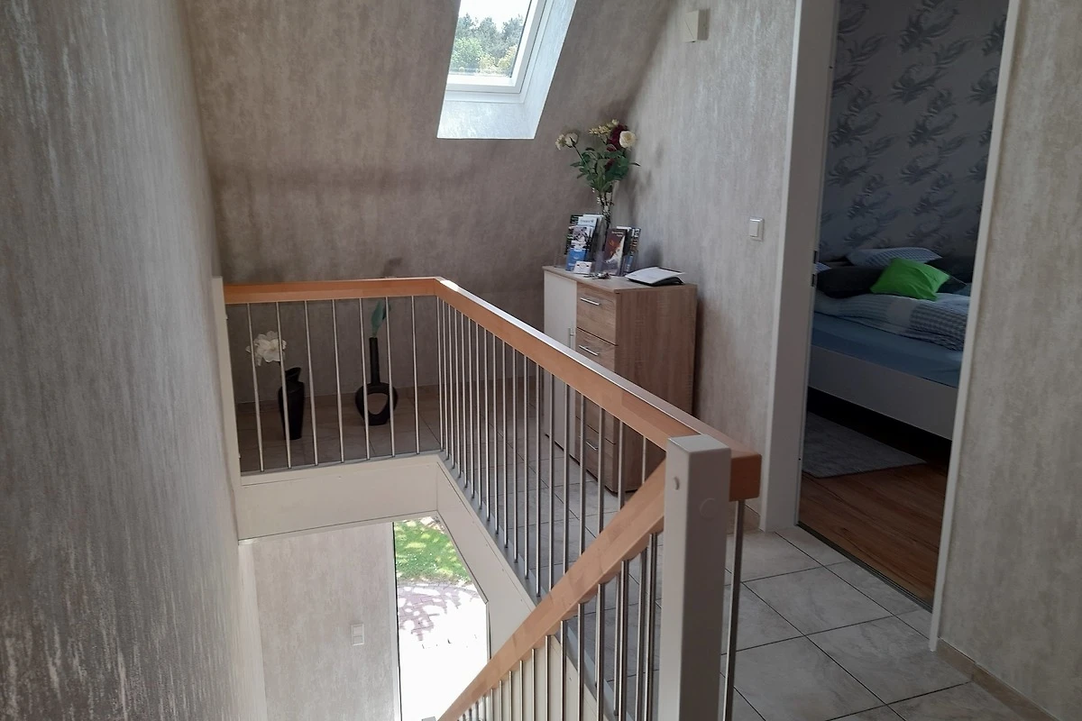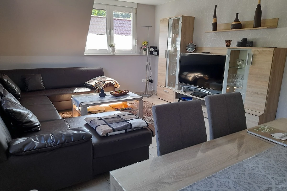 Angelikas Ferienparadies (Wohnung OG - Anni) bietet auf 85 Quadratmetern viel Platz für bis zu fünf Personen. Das grosszügige Wohnzimmer und eine seperate Küche sind komfortabel eingerichetet. Ebenso wie drei Schlafzimmer und zwei Bäder, die entweder mit einer Dusche oder einer Badewanne ausgestattet sind. Grosszügig angelegte Aussenanlagen garantieren unbeschwerte sommerliche Grillabende mit Spielmöglichkeiten für die Kinder.