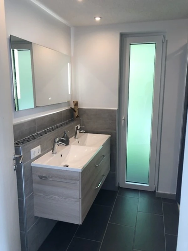 Das Tageslichtbadezimmer ist hell und modern ausgestattet und bietet eine Menge Komfort.
