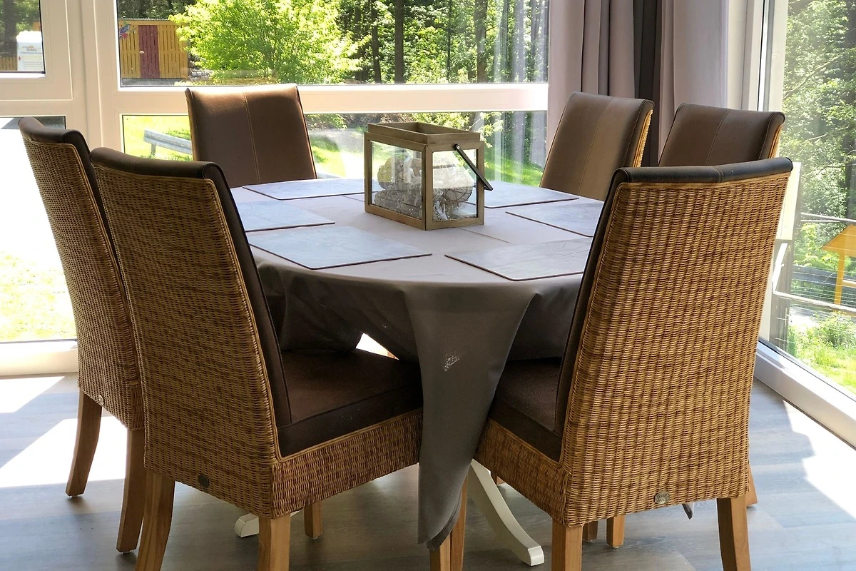 Eine Küchenzeile, mit allem was man sich in seiner eigenen Küche auch wünscht, ist vorhanden um sich jeden Urlaubstag mit gutem Essen zu verschönern. Der Essbereich für 4 – 6 Personen grenzt direkt an die Küche.