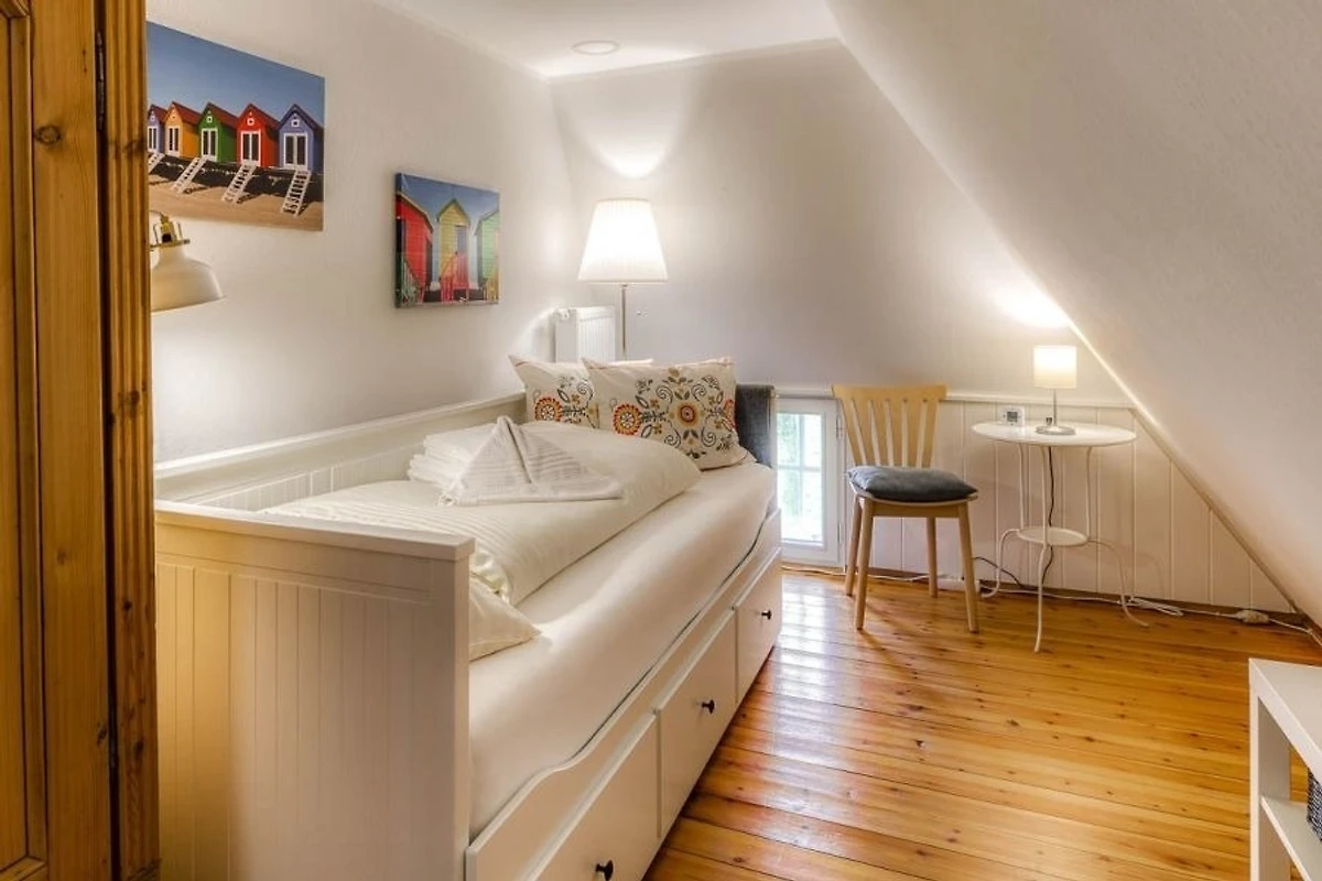 In der oberen Etage befindet sich ein weiteres Schlafzimmer mit dem gleichen Doppelbett (180cm x 200cm).