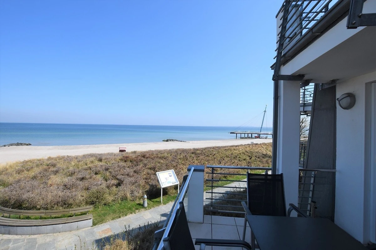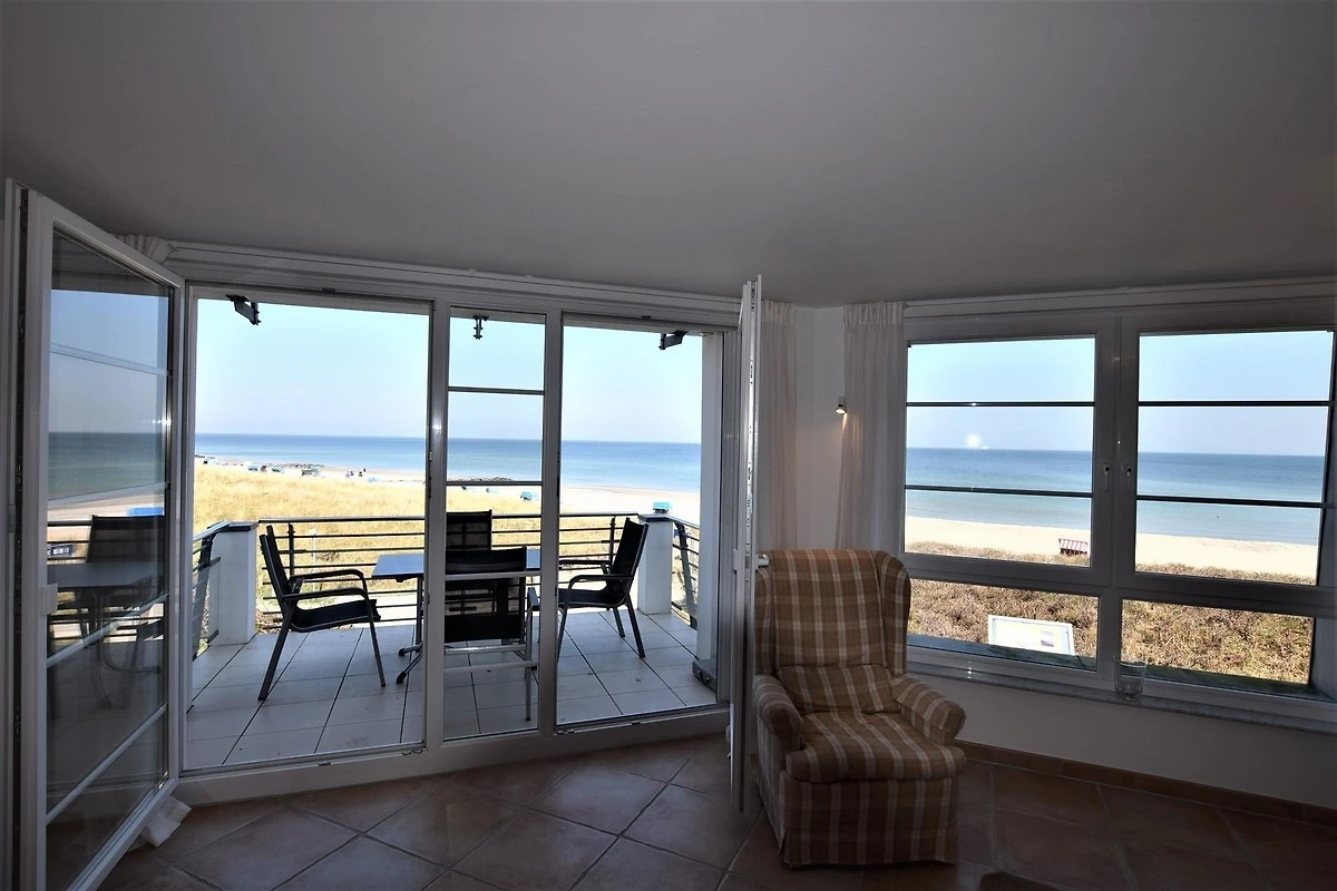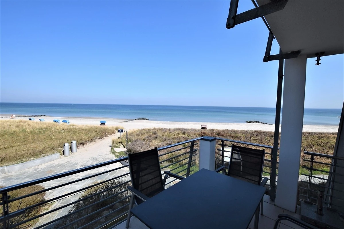 Die moderne Ferienwohnung „Meerblick“ bietet auf 85 m² Platz für bis zu 6 Personen. Sie verfügt über zwei Schlafzimmer, ein Doppelbett, zwei Einzelbetten und ein grosses Wohnzimmer mit einer ausziehbaren Ledercouch, die zusätzlichen Schlafplatz bietet. Die voll ausgestattete Küche enthält einen Geschirrspüler, Herd mit Backofen, Kühlschrank und Mikrowelle. Ein Badezimmer mit Badewanne und Dusche sowie ein Gäste-WC sind ebenfalls vorhanden. Die Wohnung ist in allen Räumen mit Fussbodenheizung ausgestattet. Der grosszügige Balkon mit Meerblick lädt zum Entspannen ein. Eine Tiefgarage mit Stellplatz für ein Auto sowie ein gemeinschaftlicher Wasch- und Trockenraum stehen den Gästen zur Verfügung. WLAN ist kostenlos nutzbar. Haustiere sind willkommen, die Wohnung ist eine Nichtraucherunterkunft und kann ganzjährig gemietet werden. Ein Strandkorb am Strand ist saisonal inklusive.