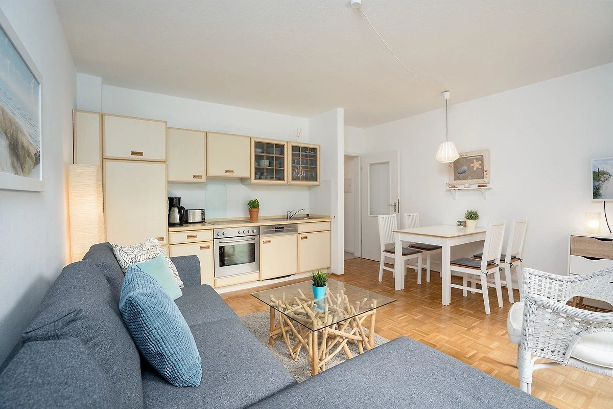 Das Appartement „Strandgut“ ist ein helles 2-Zimmer-Appartement, das nur wenige Meter vom Meer und der Strandpromenade entfernt liegt. Es überzeugt durch eine moderne und geschmackvolle Einrichtung.