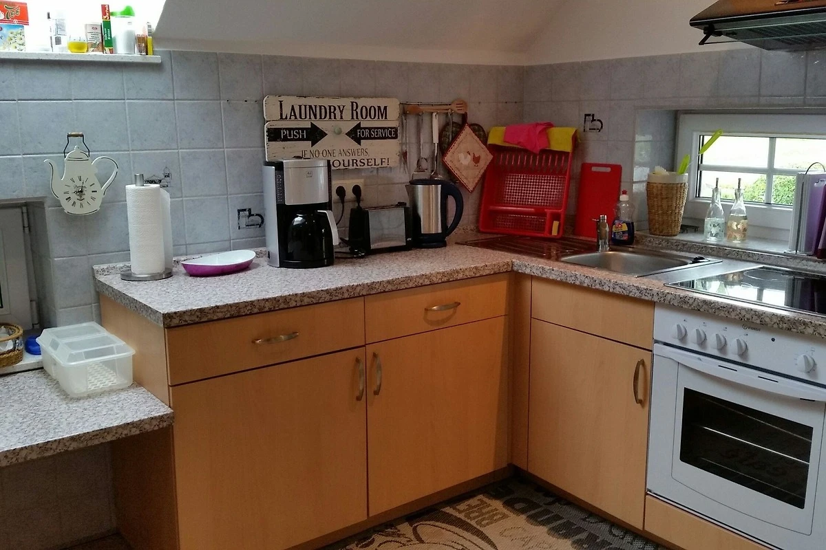Im Erdgeschoss erwartet Sie eine vollausgestattete Küche mit Elektroherd, Backofen, Mikrowelle, Kaffeemaschine, Wasserkocher, Toaster und natürlich noch vielen weiteren Kochutensilien. Die köstlichen Mahlzeiten können Sie zusammen mit Ihren Liebsten am Esstisch oder auch auf der Terrasse oder im Pavillon einnehmen.
