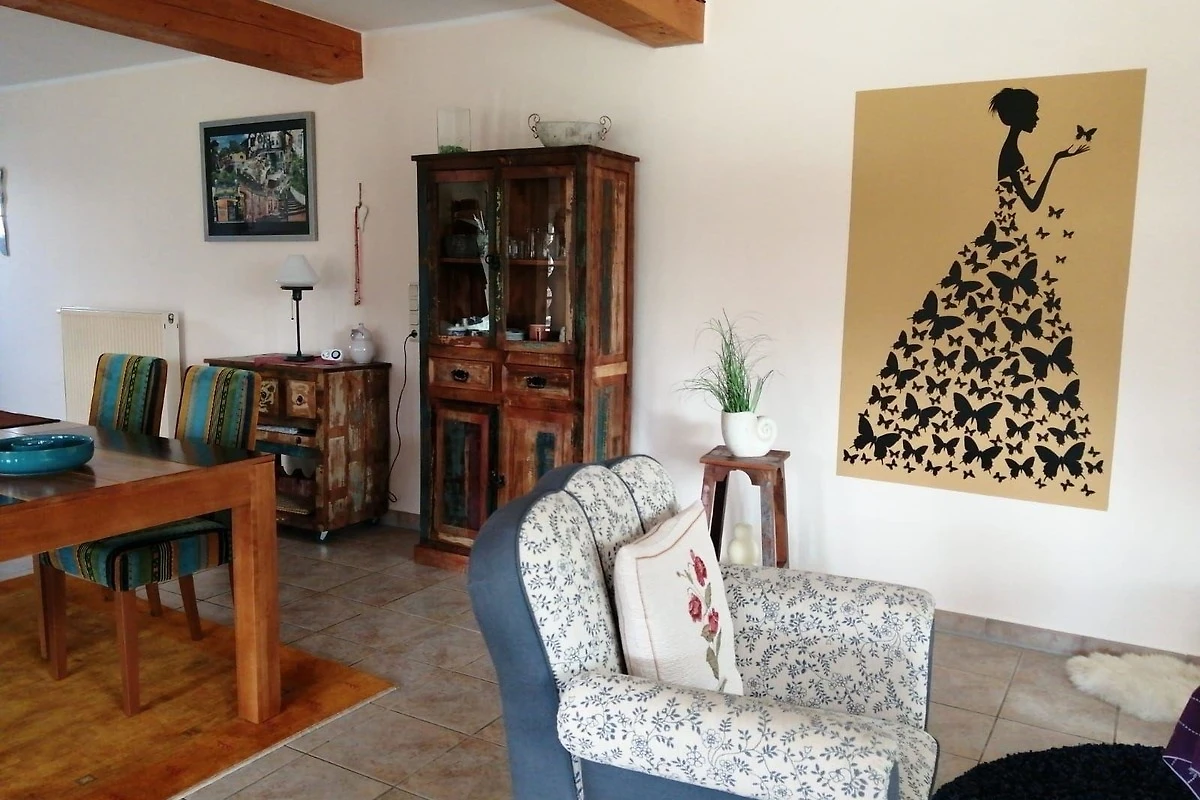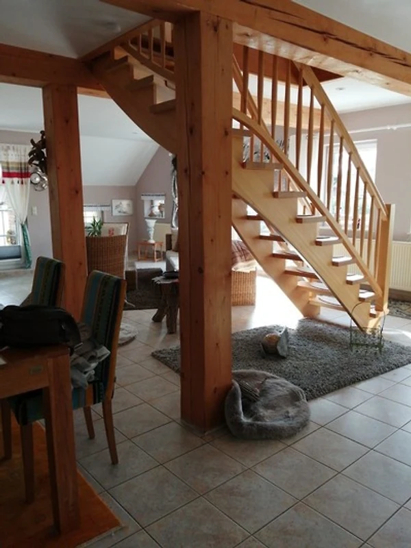 Das Herzstück der Ferienwohnung befindet sich im Erdgeschoss, hier erwartet Sie ein grosser offener Wohn- und Essbereich. Hier können Sie mit der ganzen Familie einen schönen Abend verbringen, sich einen spannenden Film anschauen oder den Tag zusammen planen. Gemütliche Sitzmöglichkeiten sind im gesamten Raum aufgeteilt, so dass Sie auch die Möglichkeit haben, sich zurück zu ziehen.