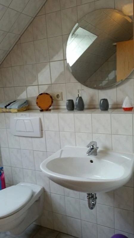 Die Ferienwohnung bietet 2 Badezimmer, das eine Badezimmer mit Badewanne befindet sich im Erdgeschoss und das 2. mit Dusche im Obergeschoss.