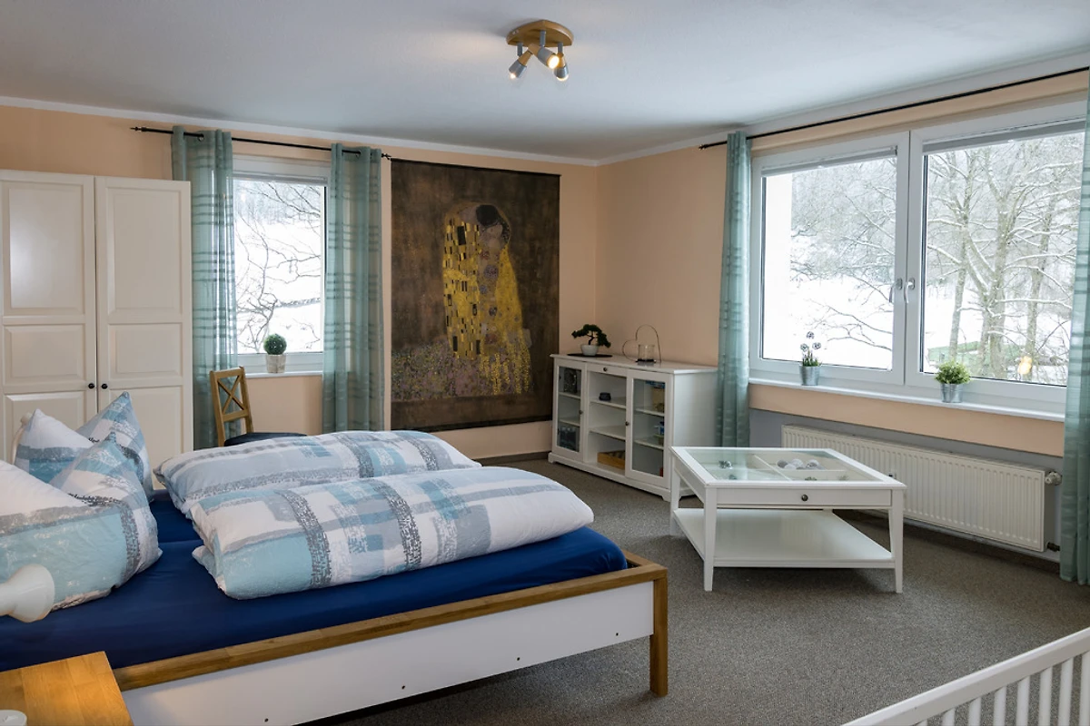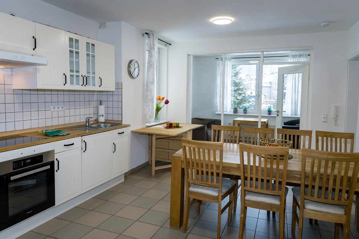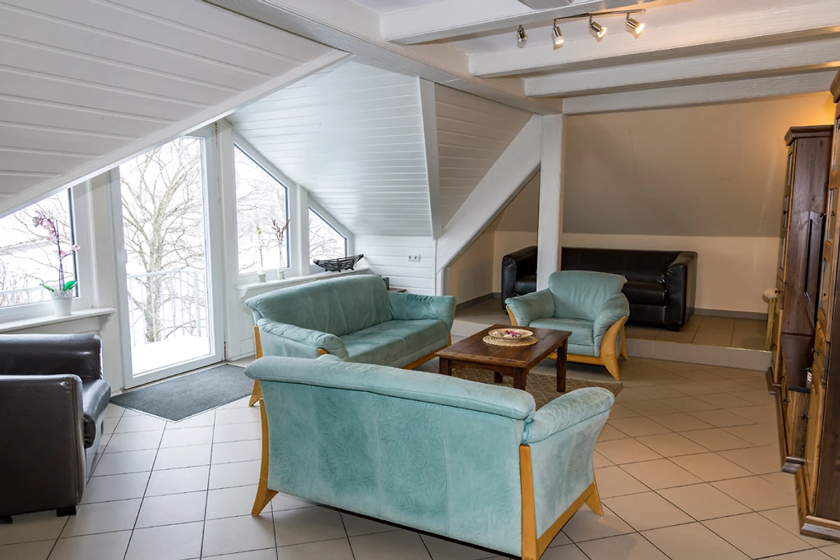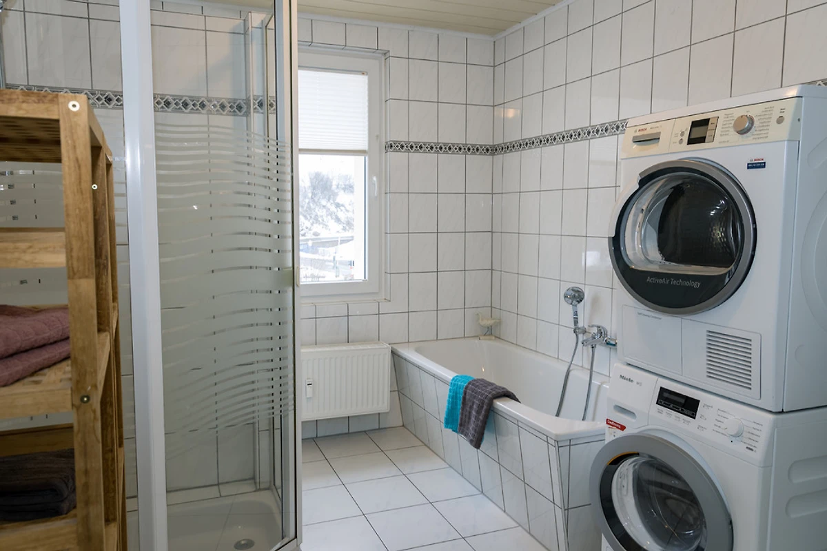 Das Ferienhaus in Erndtebrück-Birkelbach wurde im Januar 2023 in zwei große Ferienwohnungen aufgeteilt. Die Wohnung Edertal 310 qm, in den beiden oberen Wohnetagen, verfügt über 7 Schlafzimmer mit Zusatzbetten und einem Familien-Durchgangszimmer. Sie bietet Platz für 12 bis 16 Personen (2 Babybetten auf Wunsch). Die 3 großen Bäder haben Dusche und Wanne. Die Infrarot-Kabine steht ausschließlich den Gästen dieser Wohnung zur Verfügung.. Die Küche bietet allen Komfort mit Geschirrspülmaschine, Induktionskochfeld, Backofen, Kaffeemaschine und Kühl-Gefrierkombination. Im angrenzenden kleinen Wintergarten kann man gemütlich entspannen, bei einer Tasse Kaffe oder Tee. Das Eßzimmer mit großem TV-Flachbildschirm läd zum Verweilen oder zum Planen der nächsten Ausflüge. Weitere gemütliche Sitzgelegenheiten befinden sich im großen Wohnzimmer mit Balkon. Hier findet Sie auch einen weiterer TV-Flachbildschirm. Über das Treppenhaus haben Sie Zugang zum großen Saunabereich (max 12-15 Pers.) mit Ruhe-/Fitnessraum, der nach Terminabsprache vergeben wird. Für die Jugendlichen befindet man im Kellergeschoß auch einen großen hellen Aufenthaltsraum mit Tischtennisplatte und Ausgang nach Draußen.