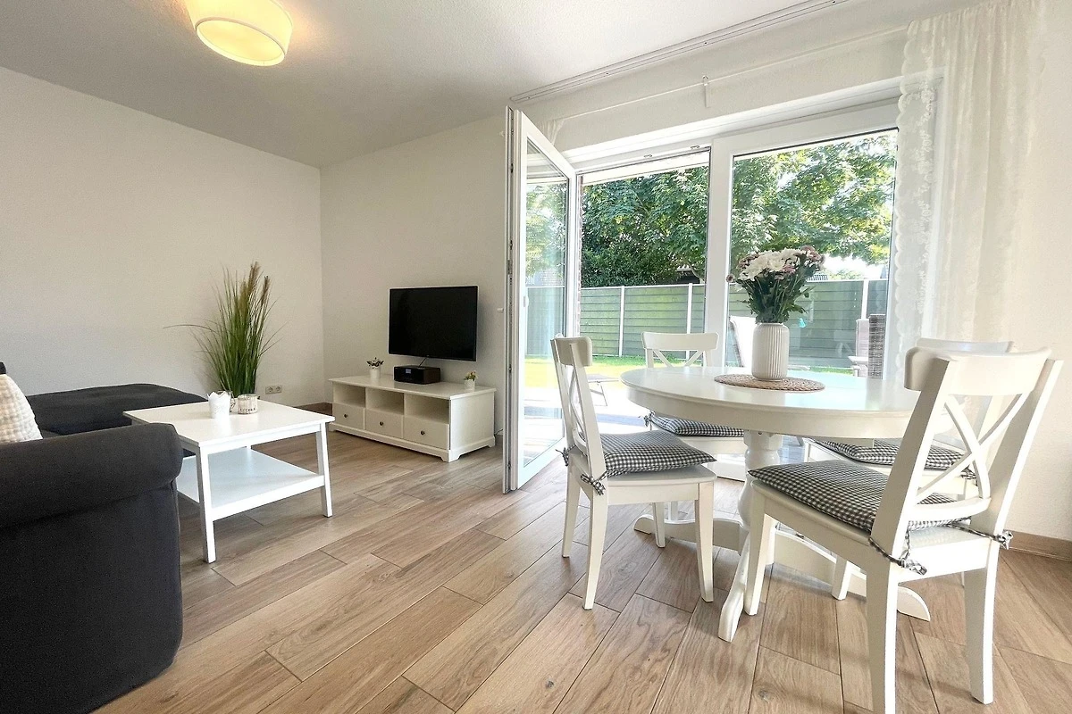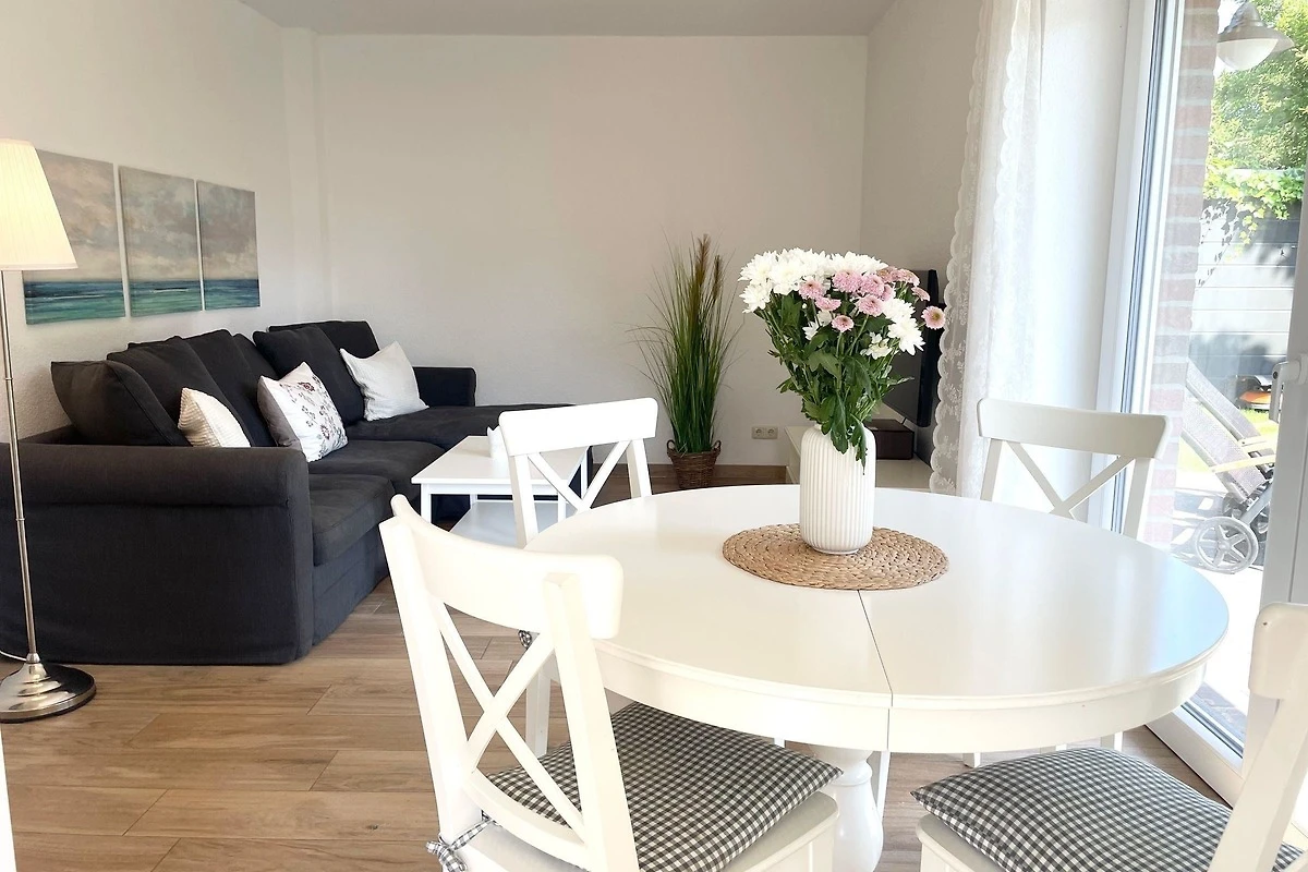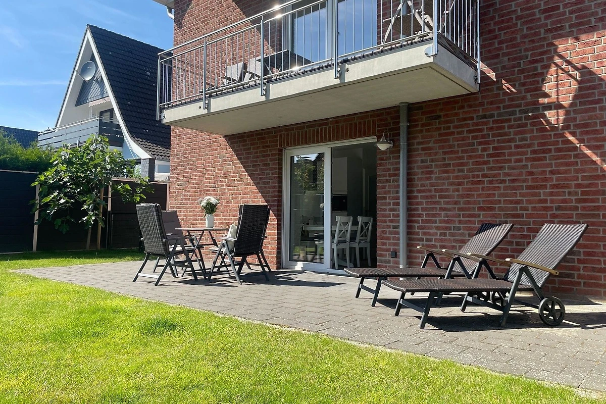 Das exklusive Erdgeschoss-Ferienapartment bietet Platz für bis zu 6 Personen und zeichnet sich durch seine helle, freundliche Einrichtung aus. Es verfügt über zwei separate Schlafzimmer, beide mit Flachbild-Fernsehern, sowie ein Wohnzimmer mit einer aufklappbaren Schlafcouch. Das moderne, behindertenfreundliche Badezimmer ist mit einer grosszügigen Walk-In-Dusche ausgestattet. Die offene Küchenzeile lässt mit Geschirrspüler, Induktionsherd, Mikrowelle, Backofen, Kaffeemaschine und Wasserkocher keine Wünsche offen. Zusätzlich gehört zur Wohnung eine eigene Terrasse mit Gartenmöbeln und ein eingezäunter Garten. Die Lage in unmittelbarer Strandnähe ermöglicht den einfachen Zugang zu zahlreichen Restaurants und Geschäften, die fussläufig erreichbar sind. Diese Wohnung ist der perfekte Ausgangspunkt für einen komfortablen Cuxhaven-Urlaub.