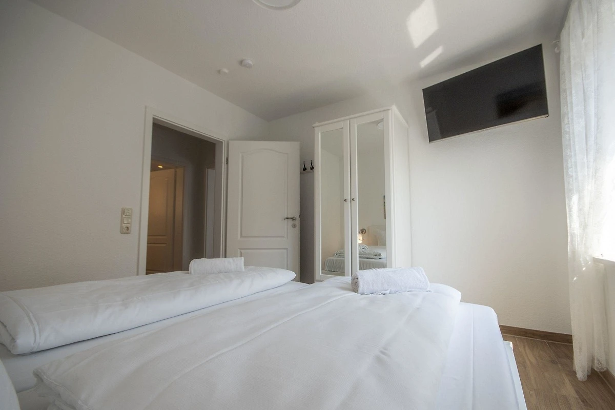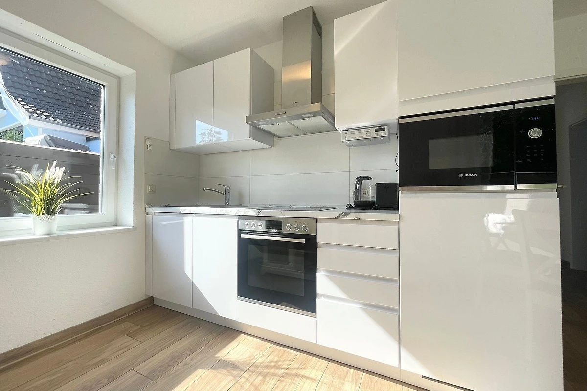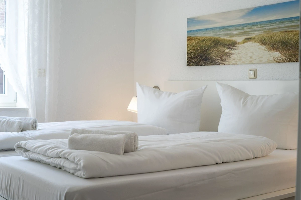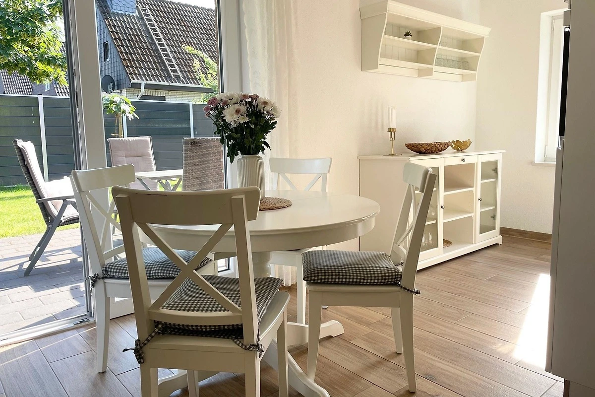 Das exklusive Erdgeschoss-Ferienapartment bietet Platz für bis zu 6 Personen und zeichnet sich durch seine helle, freundliche Einrichtung aus. Es verfügt über zwei separate Schlafzimmer, beide mit Flachbild-Fernsehern, sowie ein Wohnzimmer mit einer aufklappbaren Schlafcouch. Das moderne, behindertenfreundliche Badezimmer ist mit einer grosszügigen Walk-In-Dusche ausgestattet. Die offene Küchenzeile lässt mit Geschirrspüler, Induktionsherd, Mikrowelle, Backofen, Kaffeemaschine und Wasserkocher keine Wünsche offen. Zusätzlich gehört zur Wohnung eine eigene Terrasse mit Gartenmöbeln und ein eingezäunter Garten. Die Lage in unmittelbarer Strandnähe ermöglicht den einfachen Zugang zu zahlreichen Restaurants und Geschäften, die fussläufig erreichbar sind. Diese Wohnung ist der perfekte Ausgangspunkt für einen komfortablen Cuxhaven-Urlaub.