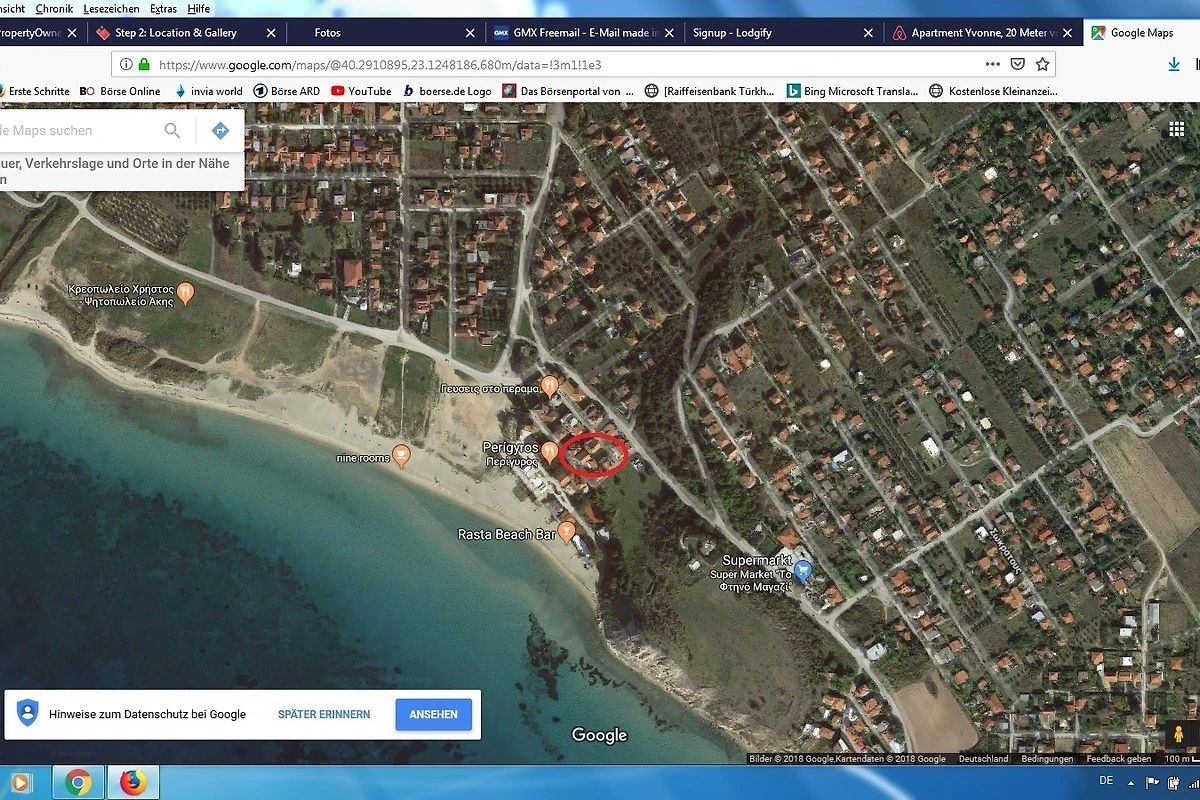 Unsere Wohnung liegt ca. 4km ausserhalb von Nea Kallikratia ,direkt am Vergia Beach.. Das Wasser hier ist kristallklar und mehrfach ausgezeichnet. Besonders zu empfehlen ist der Strand für kleine Kinder, da dieser sehr flach abfallend ist und man hier einfach ausgelassen Spass haben kann.
