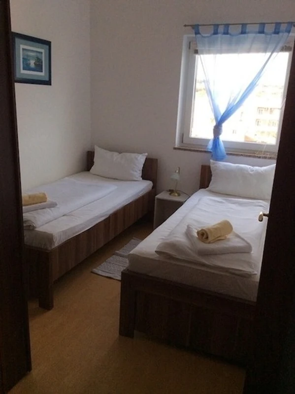 Unsere vollklimatisierte Dachgeschosswohnung (3 Sterne Landeskategorie) befindet sich im 3 OG eines neugebauten, ruhig gelegenen und sehr gepflegten Mehrfamilienhauses, nur 300 Meter vom Strand und pulsierendem Ortszentrum entfernt. Sie umfasst ein sehr schönes Wohnzimmer mit grosser gemütlicher Eckcouchgarnitur die auch zum Schlafen von bis zu zwei Personen geeignet ist. Der Wohnzimmerschrank ist mit LCD Fernseher, DVD Recorder und SAT-Receiver ausgestattet. Das Schlafzimmer ist mit 2 getrennten Betten ausgestattet, die auch gerne zusammengestellt werden können. Das Appartement verfügt noch über eine Bar und eine kleine Küche sowie einem Esstisch für 4 Personen. Auf dem schönen grossen Balkon haben Sie die Möglichkeiten, morgens mit einem Blick aufs Meer zu frühstücken und abends den Tag mit einem Glas Wein bei Sonnenuntergang ausklingen zu lassen. Ein Bootsanlegeplatz kann extra bei uns angemietet werden.