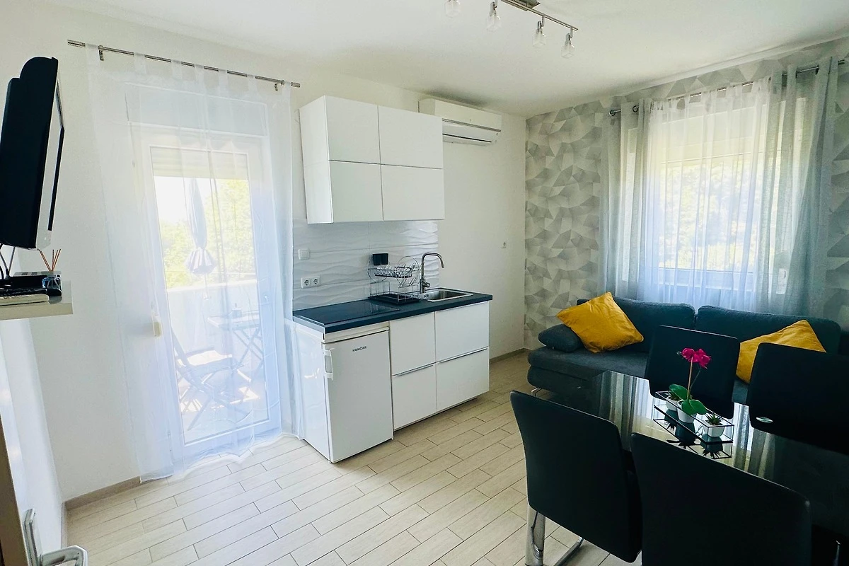 Lage und Ort: Das Appartement liegt in Medulin, dem Touristenzentrum an der Südspitze Istriens. Die wunderschöne Promenade mit zahlreichen ausgezeichneten Cafés und Restaurants lädt zum Schlemmen und Geniessen ein.