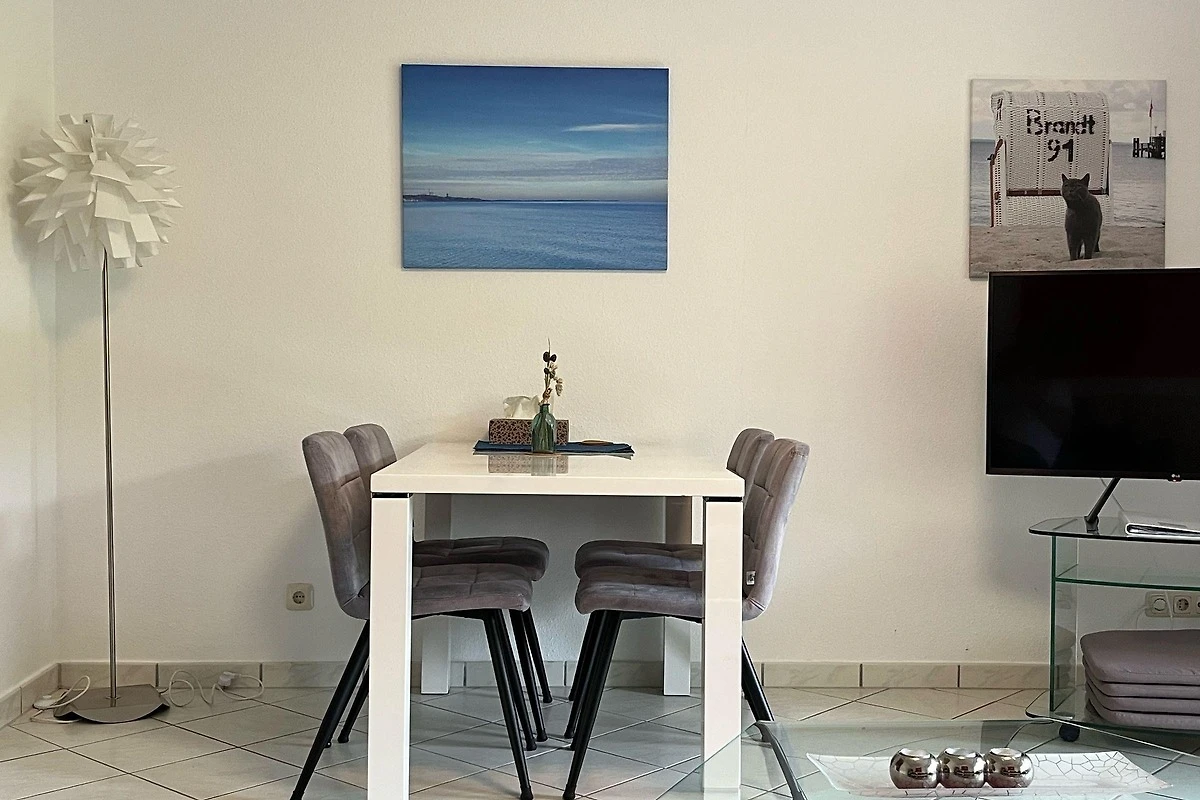 Das 3-Zimmer-Terrassen-Appartement in Haffkrug erstreckt sich über ca. 56 qm und bietet einen hellen, grosszügigen Wohnraum mit einer integrierten Einbauküche und einem angrenzenden Essplatz. Die Küche ist komplett ausgestattet und ermöglicht ein angenehmes Kochen. Es gibt zwei Schlafzimmer: eines mit einem Doppelbett und ein Kinderzimmer mit einem Standard-Bett für komfortablen Schlaf. Ein modernes Duschbad mit ebenerdiger Dusche sowie einem wärmenden Handtuchhalter rundet die Ausstattung ab. Der Wohnraum und das Kinderzimmer verfügen über elektrische Rollläden. Für technisches Komfort sorgt kostenloses WLAN, jedoch ohne Gewährleistung bei Störungen. Das Appartement bietet auch Zugang zu einer überdachten Terrasse und einem privaten Garten. Ein gemeinschaftlich nutzbarer Grillplatz mit einem modernen Holzkohlegrill steht zur Verfügung. Rauchen und Tierhaltung sind in der Wohnung nicht erlaubt. Ein kostenloser Stellplatz ist ebenfalls vorhanden.