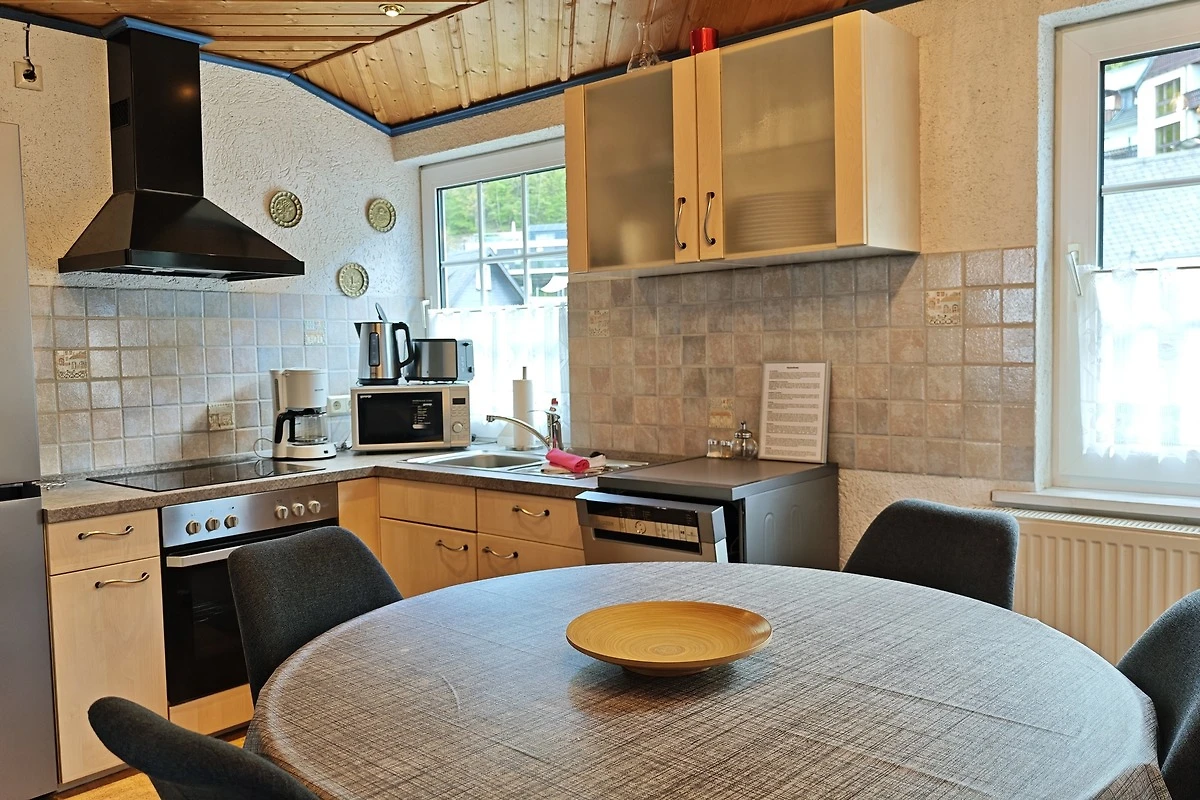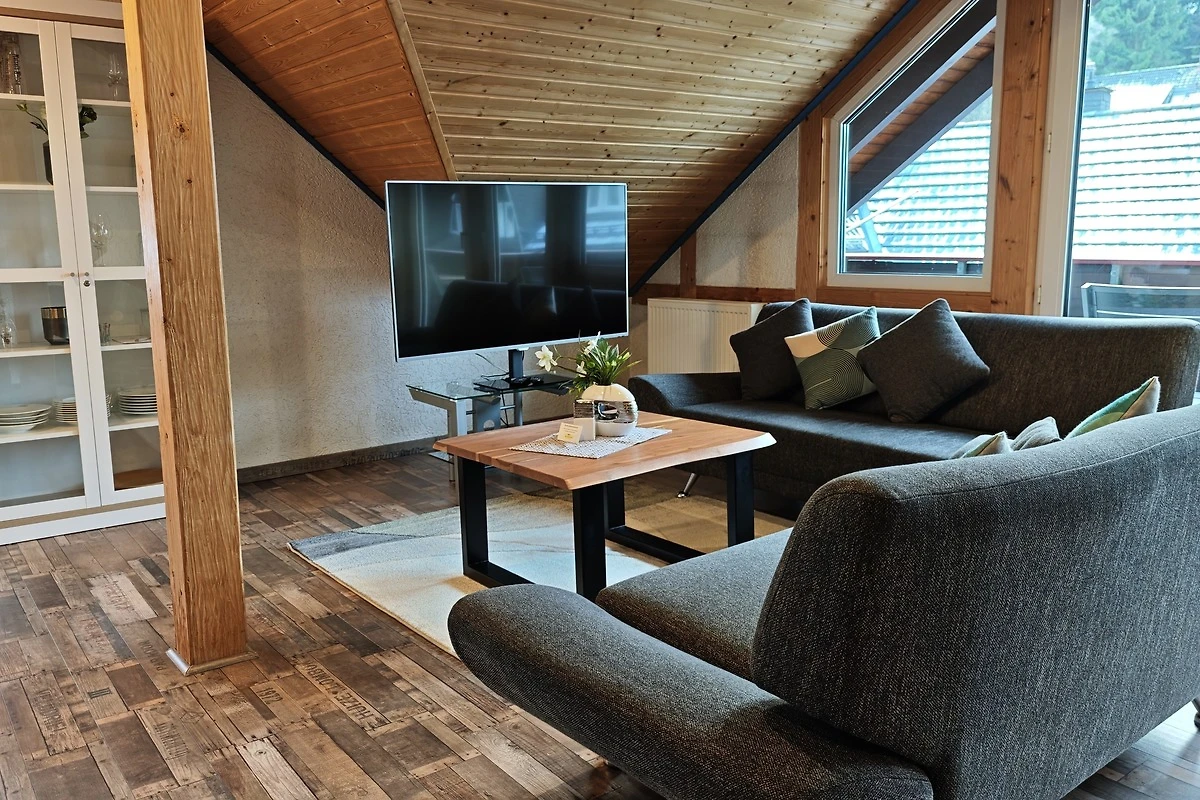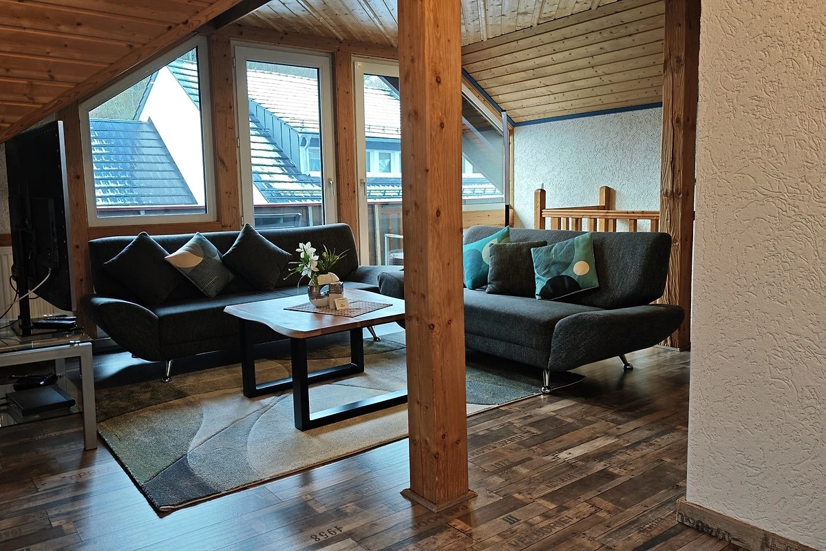 ie Ferienwohnung Sonnenschein ist 80m² gross und bietet einen kleinen Windfang im Obergeschoss, bevor Sie die eigentliche Wohnung im Daschgeschoss über eine Treppe betretten. Es stehen insgesamt zwei Schlafzimmer zur Verfügung welche beide mit einem gemütlichen Einzelbett sowie Doppelbett ausgestattet sind. Insgesamt finden hier 4 Erwachsene und 2 Kinder Platz. Das grosse Wohnzimmer mit Sitzecke, Sat-TV und Blu-Ray Player ist der Mittelpunkt der Wohnung. Hierrüber erreichen Sie den Giebelbalkon, mit Aussicht auf das Willinger Viadukt, und es grenzt an die grosse Einbauküche mit separater Essecke an, in der Sie nichts vermissen werden. Das Badezimmer ist in diesem Apartment bewusst auf zwei Räume aufgeteilt, mit Dusche/Waschbecken und WC/Waschbecken, so das immer 2 Personen gleichzeitig das Bad benutzen können.