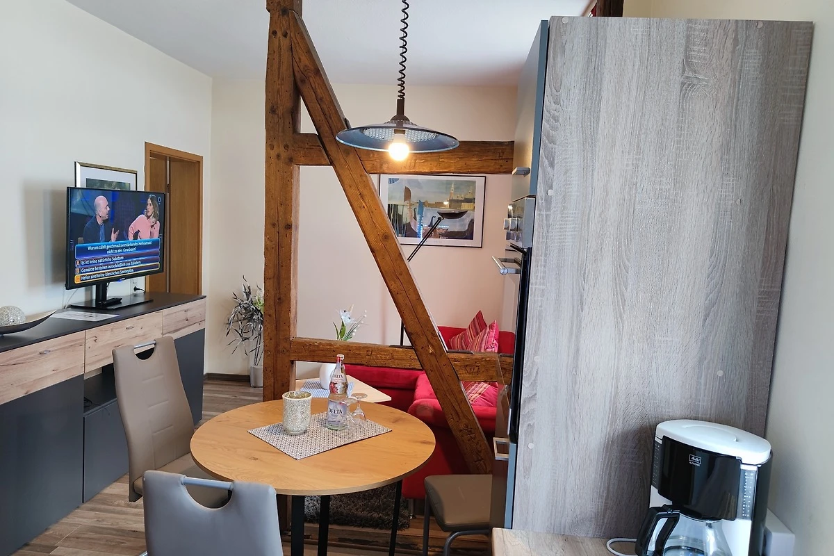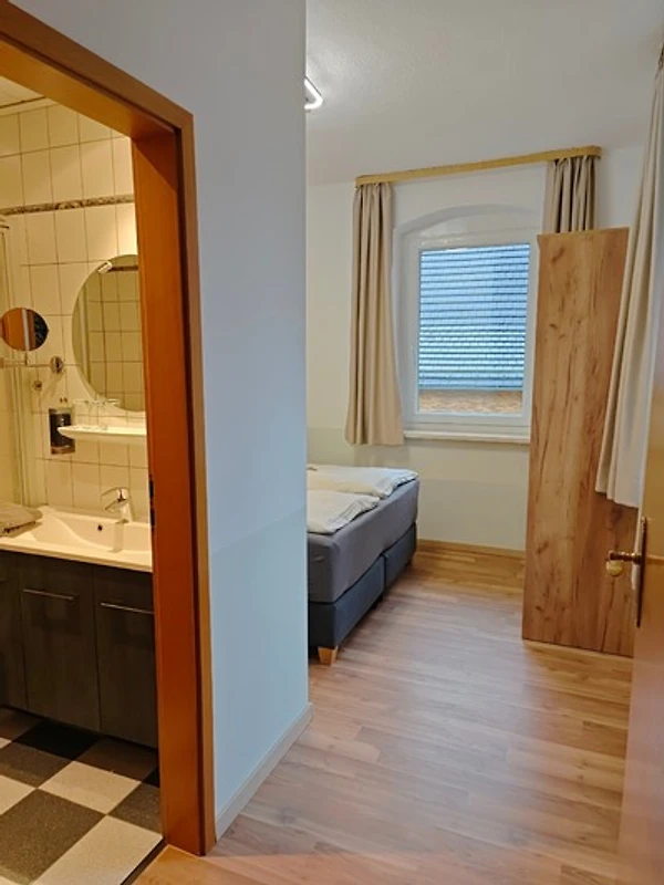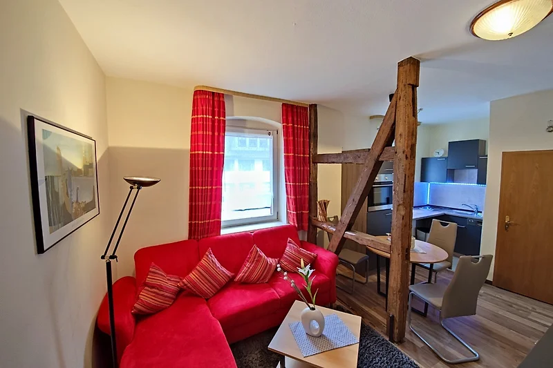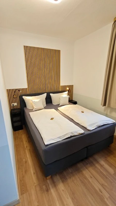 Das Apartment befindet sich im 1. Stock und bietet Ihnen auf ca. 38 m² ein Schlafzimmer mit Boxspringbett, ein Wohnzimmer mit gemütlicher Sitzecke und Sat-TV sowie ein Bad mit Dusche/WC,Haarfön, Kosmetikspiegel und Pflegeprodukten.