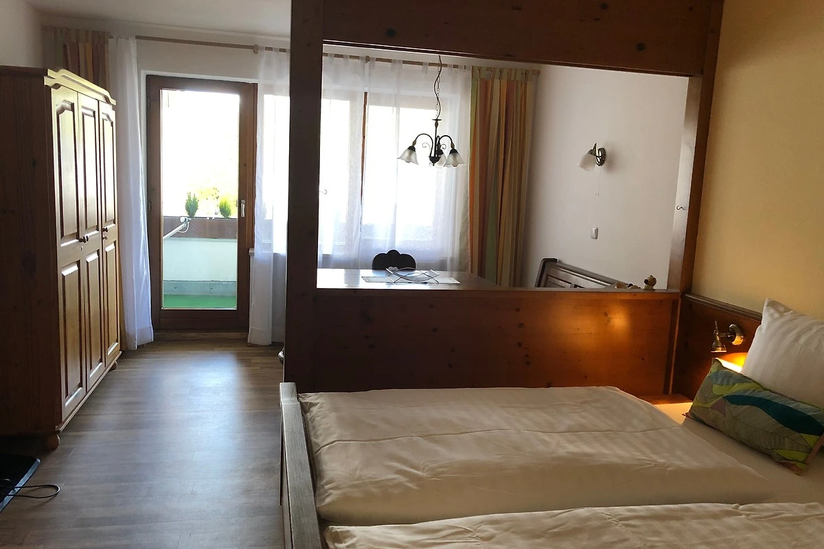Sonniges voll möbliertes 1 Zimmer-Appartement (32qm) für 2 Personen in zentraler Lage von Pfronten-Ried. Die im 1. Stock eines Appartementhauses gelegene Ferienwohnung besteht aus einem geteilten Wohn-Schlafzimmer, einer Kochnische, separatem Duschbad mit WC sowie grosser Süd-Loggia mit Bergblick. TV, freies W-LAN.