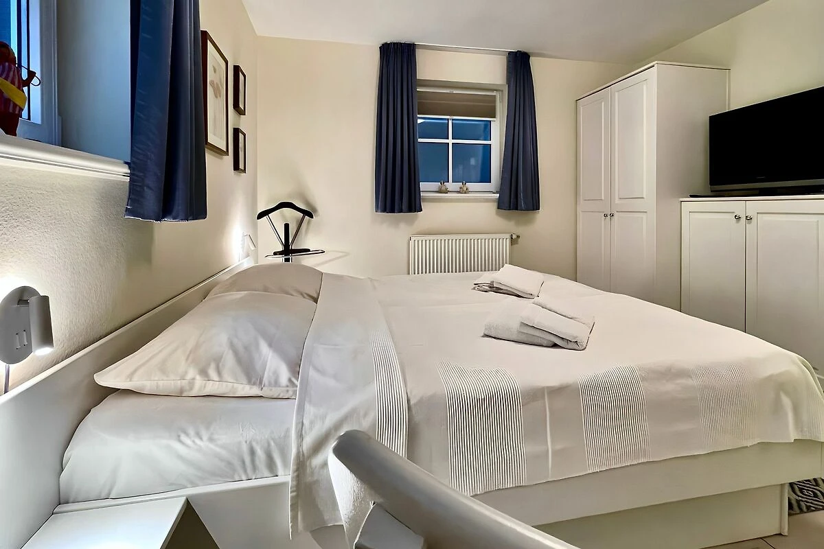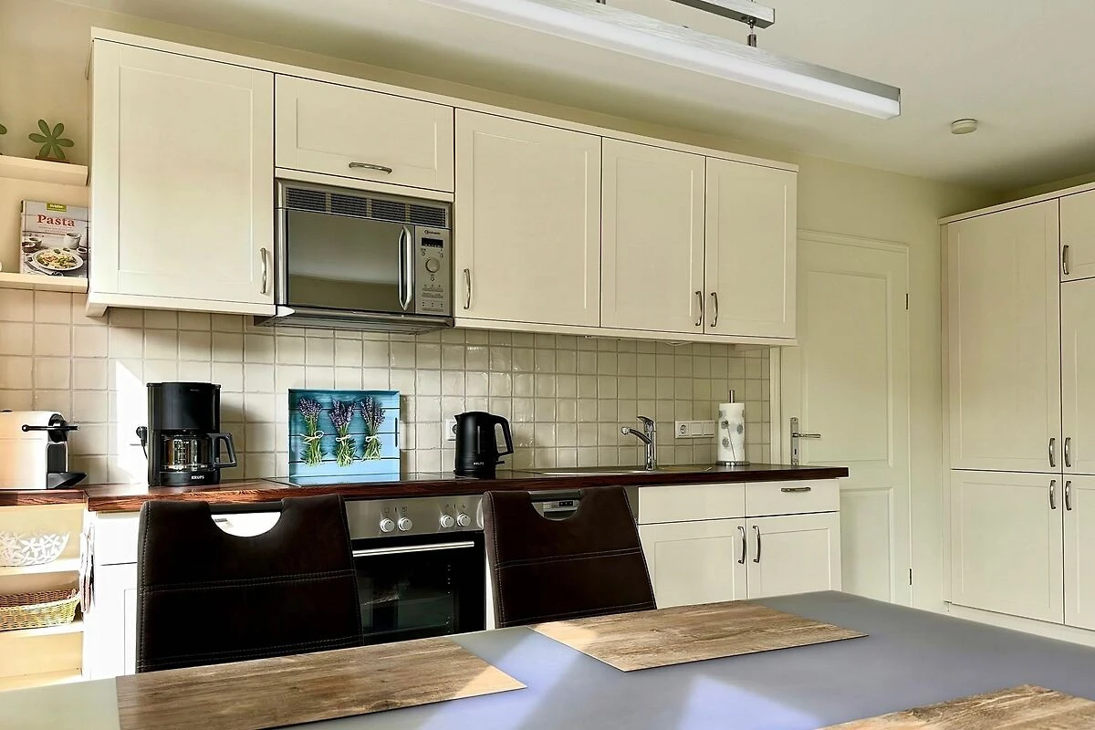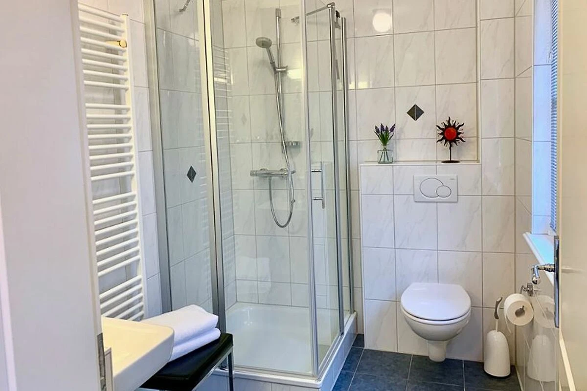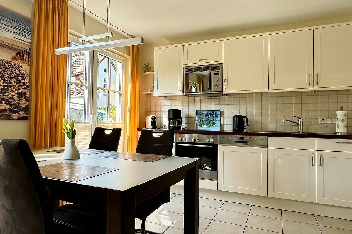 Herzlich Willkommen in unserem ruhig gelegenen, exklusiven Appartement. Die hochwertige Möblierung sowie die grosszügig geschnittenen, lichtdurchfluteten Räume kennzeichnen diese aussergewöhnliche Ferienwohnung. Das Haus mit 4 Wohnungen steht in unmittelbarer Nähe vom Südstrand in Wyk. Von der geschützt liegenden, grosszügigen Südterrasse geniessen Sie den Blick auf das kleine Wäldchen und die Atmosphäre der unmittelbar dahinter liegenden Nordsee. Während Sie gemütlich bei einem Glas Wein im Strandkorb den schönen Tag ausklingen lassen, toben Ihre Kinder im eigenen Garten. Abends oder bei Schietwetter machen Sie es sich am Kaminofen gemütlich oder entspannen sich in der eigenen Infrarotsauna und tanken mal wieder auf! Ein Appartement mit hohem Komfort.