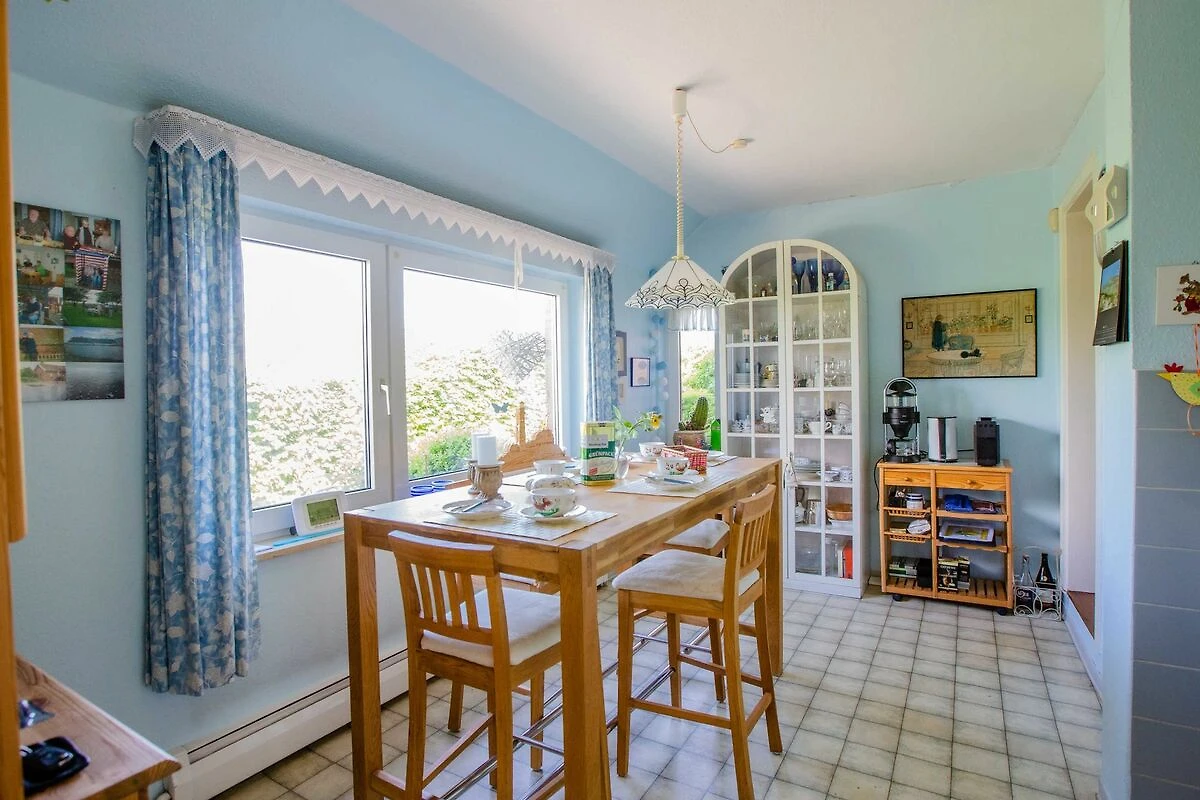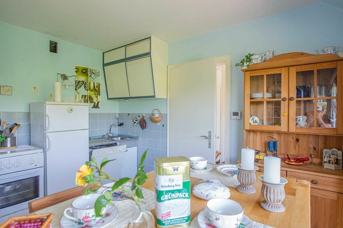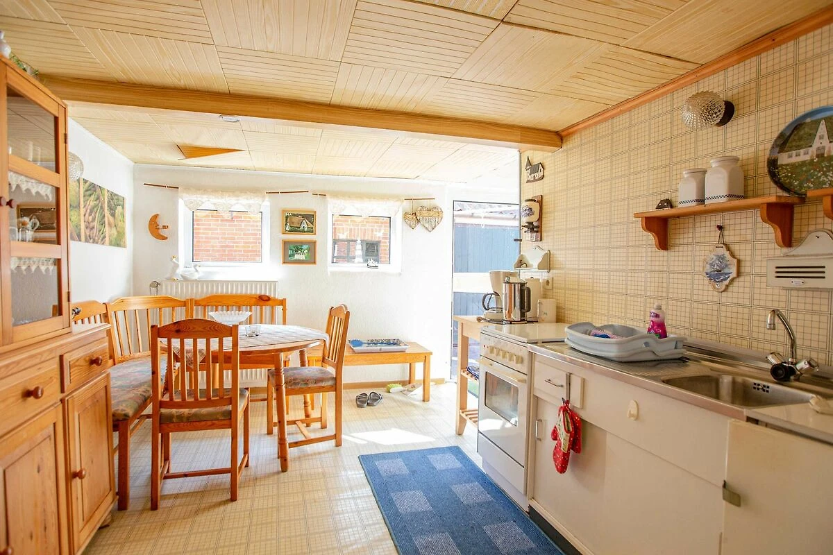 Das Haus hat 2 voneinander getrennte Wohnungen und ist typisch ostfriesisch, aber sehr einfach eingerichtet. Wer Wert auf moderne Möbel und Komfort legt, ist hier ausdrücklich an der falschen Adresse. Zum Haus gehört ein Grundstück mit 1500qm Fläche mit 2 grossen Gärten mit Obstbäumen (Apfel, Birne, Pflaume, Kirsche), Johannisbeer- und Stachelbeer Streuchern, und einem grossen Fahrradschuppen (5 alte Fahrräder vorhanden!). Je nach Tageszeit kann man entweder im vorderen Garten entspannen und speisen, oder hinter dem Haus sitzen und der Sonne beim Untergehen hinter dem Deich zuschauen, und sich die frische Nordseeluft bei einem kühlen Jever um die Nase wehen lassen.