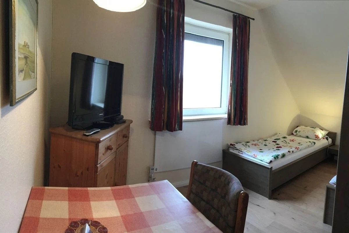 Sie ist kompakt geschnitten und eignet sich ideal für bis zu zwei Personen, die eine praktische und unkomplizierte Unterkunft in Nordfriesland suchen. Der kombinierte Wohn- und Schlafbereich verfügt über zwei separate Betten, einen kleinen Essplatz sowie eine Pantry-Küche mit Kochmöglichkeit, Kühlschrank, Kaffeemaschine und den wichtigsten Küchenutensilien.
