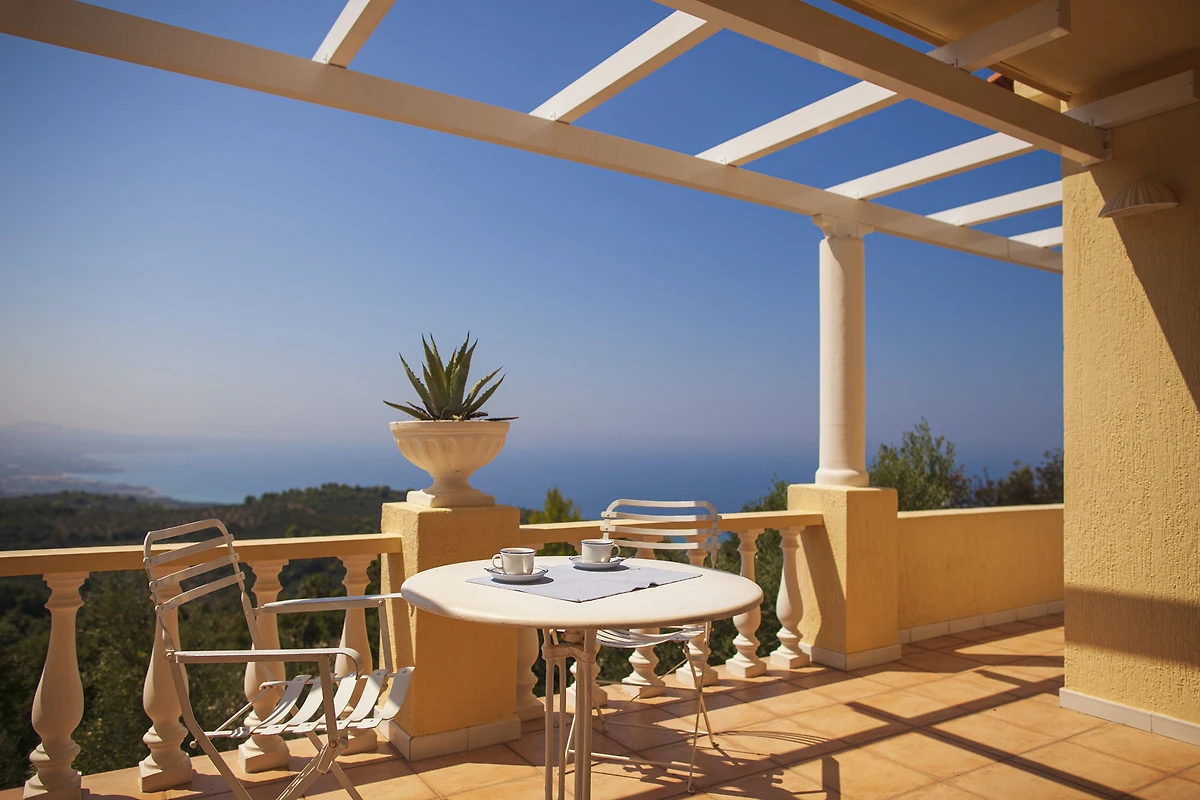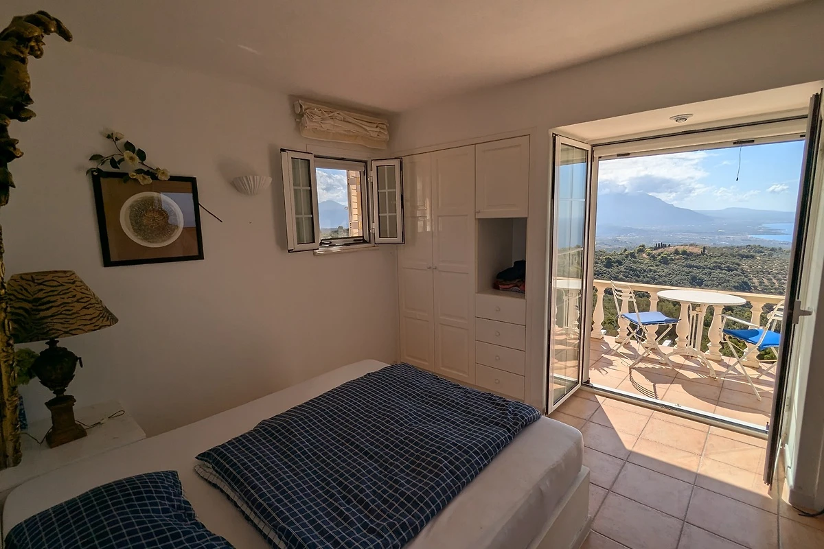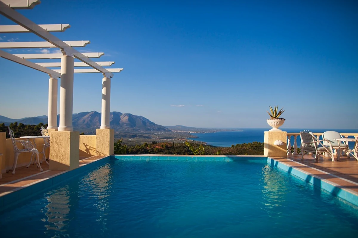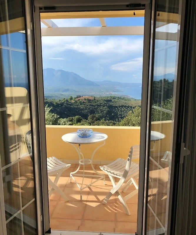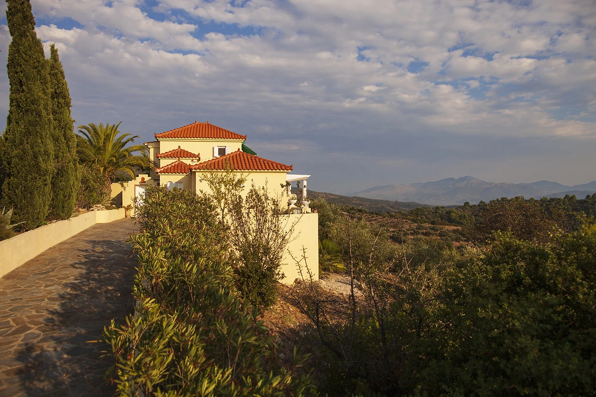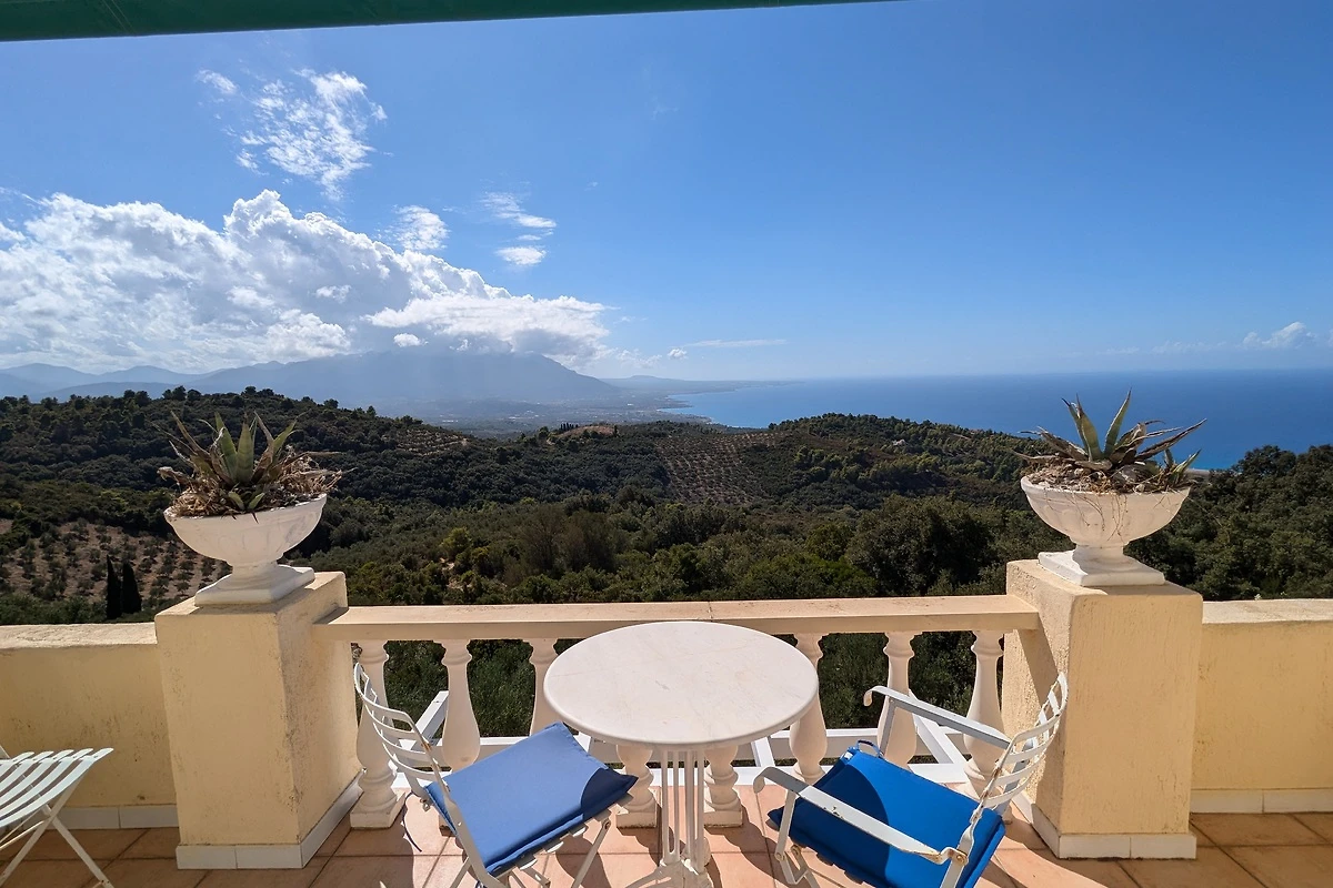 Die Villa Panorama liegt an einem Berg mit freiem Blick über Berge, Täler, Olivenhaine, die Küstenstadt Kiparissia und das Meer.