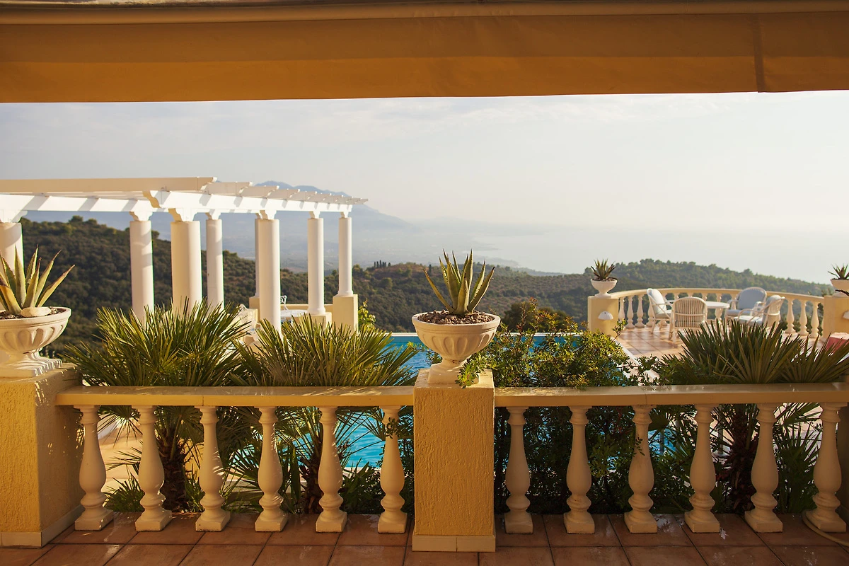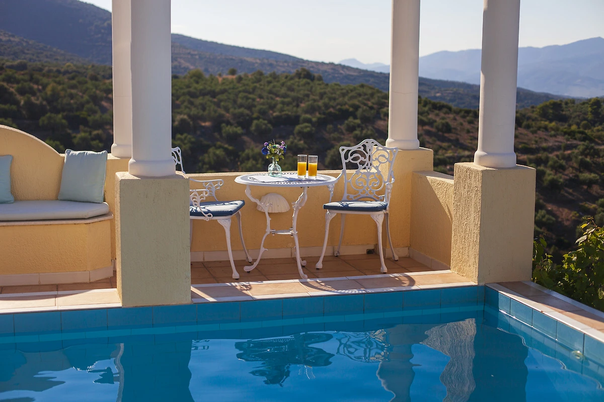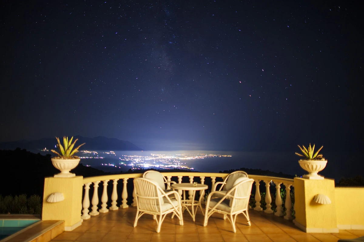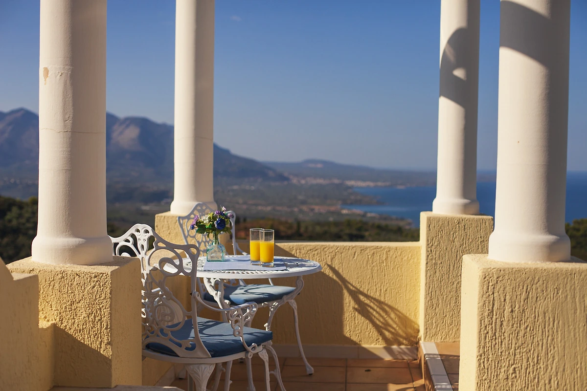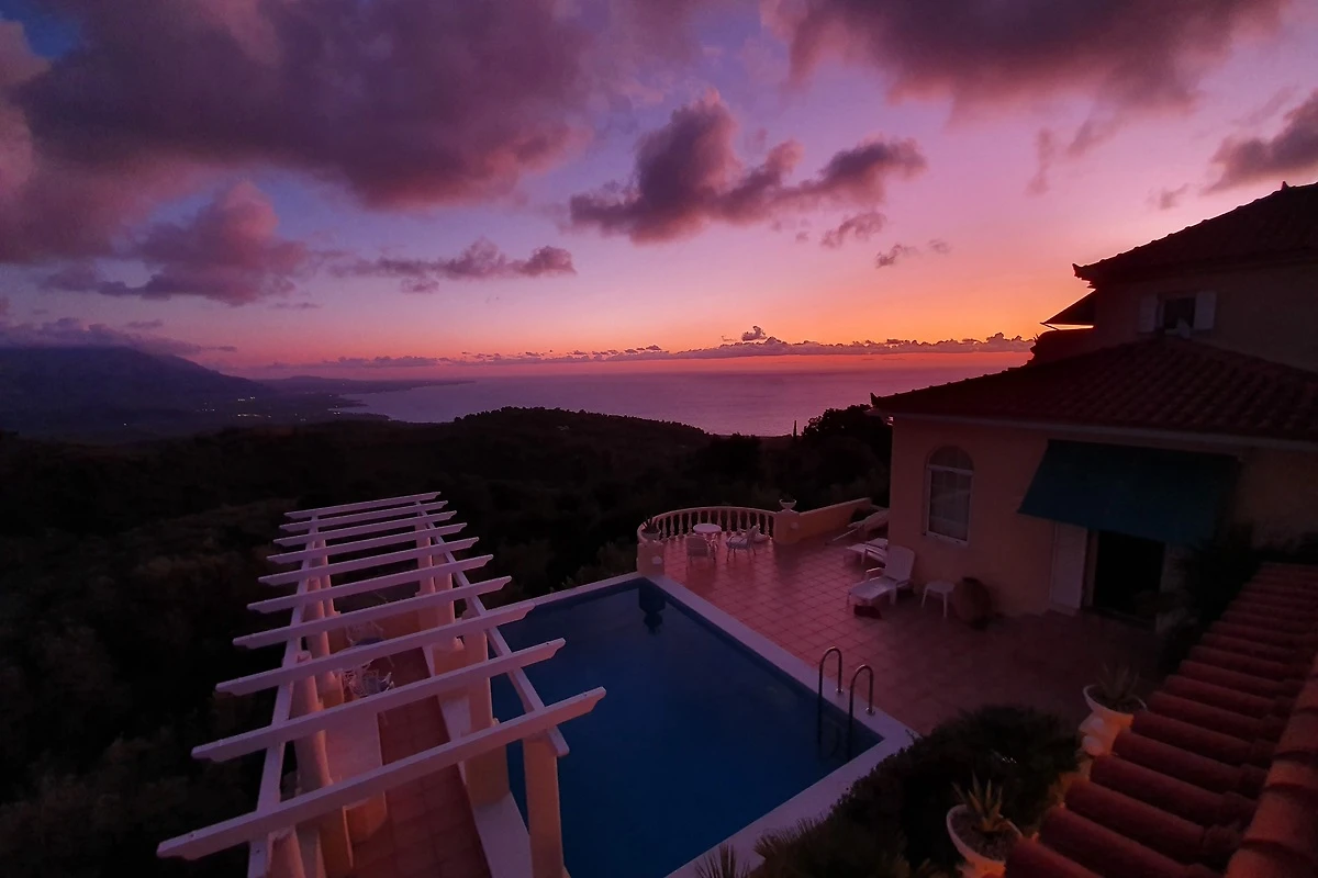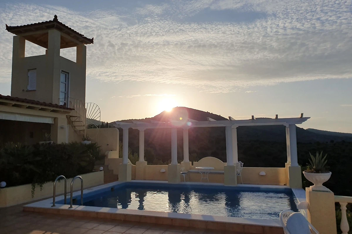 Die Villa Panorama liegt an einem Berg mit freiem Blick über Berge, Täler, Olivenhaine, die Küstenstadt Kiparissia und das Meer.