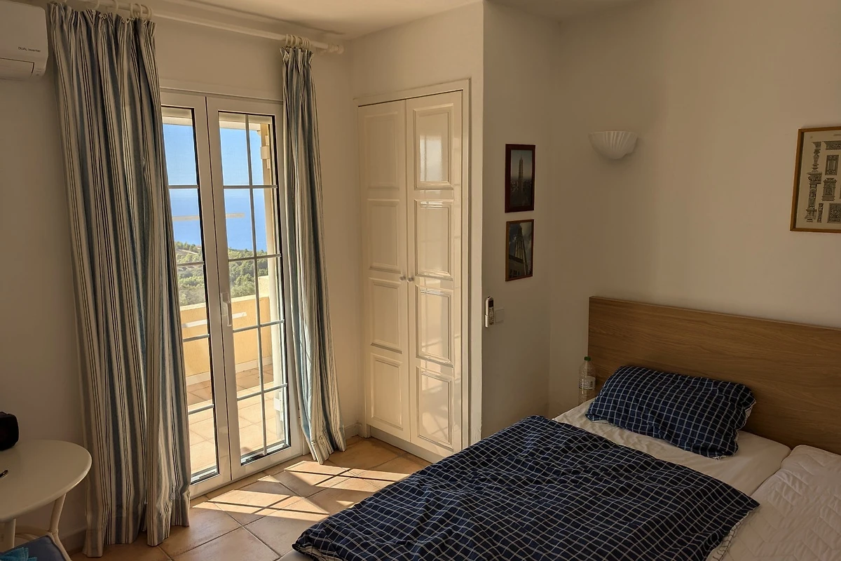 ≻ 3 klimatisierte Schlafzimmer mit Doppelbetten (alle mit Blick ins Tal und Zugang auf Terrasse/Balkon)