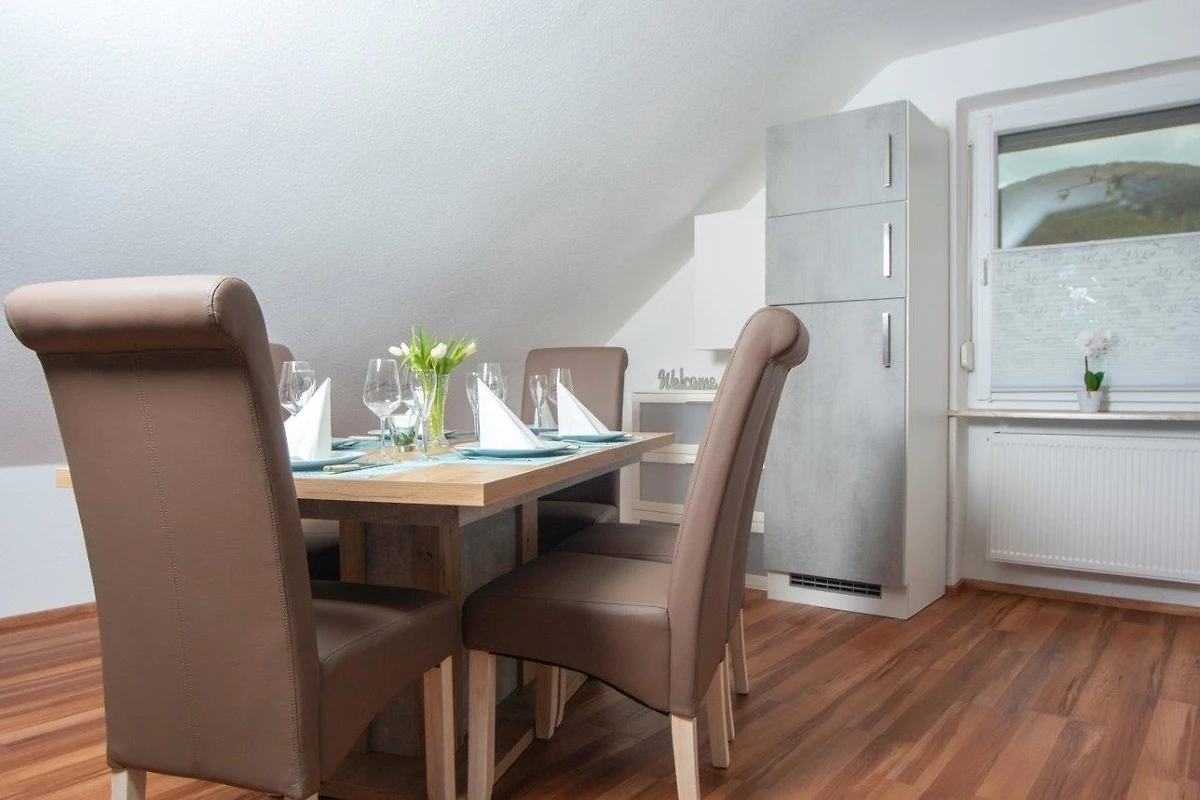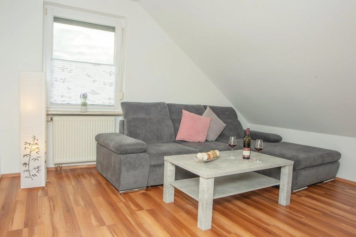 Unsere Ferienwohnung wurde 2021 renoviert. Die 3ZKB befinden sich im 2. OG und verfügen über 90 m², welche Platz für 2 - 4 Personen bieten. Die 2 Schlafzimmer sind mit Boxspringbetten und geräumigen Kleiderschränken ausgestattet. Im Wohnzimmer befindet sich eine grosse Couch, welche sich zur Schlafcouch umwandeln lässt; hierauf kann eine Person zusätzlich Platz finden. Die Ferienwohnung hat einen Sat-TV-Anschluss sowie kostenfreies WLAN. Im Badezimmer mit Dusche/WC sind eine Waschmaschine sowie ein Trockner vorhanden. Föhn und Handtücher liegen für Sie bereit. Die voll ausgestattete Küche ist mit einem Kühl-/Gefrierschrank, Geschirrspüler, Mikrowelle, Wasserkocher, Senseo Kaffeemaschine und Toaster ausgestattet, somit bleiben keine Wünsche offen, um auch einmal selbst etwas Leckeres zu zaubern.