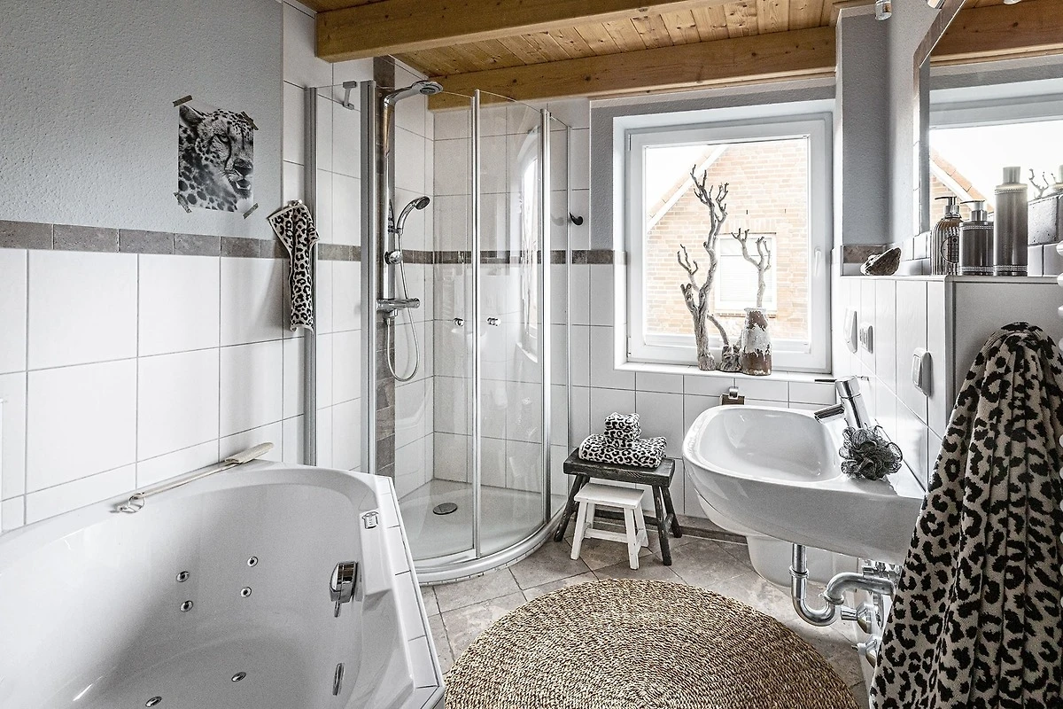 Wohnung ist schön eingerichtet, sehr gut ausgestattet und sehr gut gereinigt. Parkplatz bestens. Die Wohnung hat die ideale Lage für uns, da wir den Tag gerne in Wittdün starten mit Einkauf bei Edeka oder Bäcker und in der „Strandbar Seehund“ oder in der Blauen Maus ausklingen lassen Gut zu Fuß zu erreichen. Whirlpool-Badewanne mit Bedienung des seitlichen Mechanismusses nicht hingekriegt. Wasser lief immer ab und blieb nicht in der Wanne. Das lag wohl an uns. Einige Spülmaschinen-Tabs vorhanden, 2 Pods für die Waschmaschine wären ein Sahnehäubchen gewesen. Wäschetrockner und Leifheit-Wäscheständer sind vorhanden, nur mehr als drei Wäscheklammern wären schön. Worauf man sich nur einstellen müsste: Nach der ebenerdigen Eingangstür geht es erst mal eine steile Treppe hoch. Mit Koffer erst mal umständlich. Ich würde das nächste Mal alles in kleinere Rucksäcke oder Taschen packen. Mit den Klamotten eine weitere enge Holztreppe in das Schlafzimmer erklimmen, ist auch eine Herausforderungen. Die Bett-Toilettendistanz ist im schlaftrunkenen Zustand auch nicht ganz unproblematisch, auch wenn es am Anfang der Treppe ein Licht mit Bewegungssensor gibt, was man abnehmen kann. „Zu Risiken und Nebenwirkungen...“ lesen Sie in diesem Fall die Wohnungsbeschreibung gründlich durch . Ansonsten alles ziemlich perfekt.