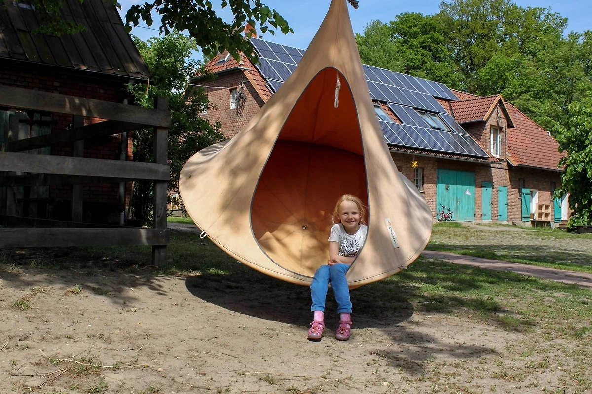 Rund um die Rübenburg gibt es jede Menge zu erleben. Das weitläufige Grundstück ist ursprünglich und natürlich geblieben. Im Klettergarten lässt es sich herrlich toben, im Badeteich mit den Fröschen um die Wette schwimmen. Wer Lust hat, macht sich im Bio-Garten nützlich. Zusätzlich hält die grosse Holzscheune Fahrgeräte etc. zum Spielen bereit.