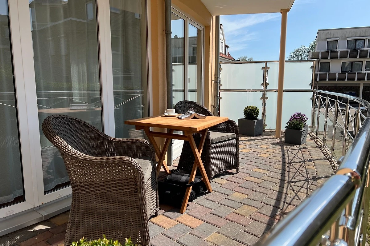 Die Entfernung zum Bäcker beträgt nur 150 m zum Supermarkt sind es 450 m und zum Strand und zur Kurpromenade sind es nur 300 m.