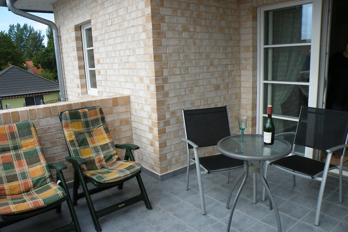 Balkon mit Tisch u. 2 Sessel und Liegen (Westseite).