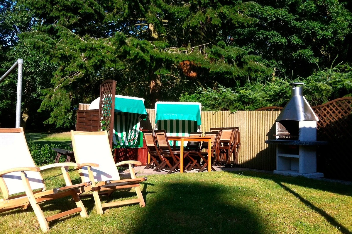 Zur Wohnung gehört ein PKW-Stellplatz auf dem Grundstück. Für mitgebrachte Fahrräder oder Bollerwagen gibt es einen gemeinschaftlichen Abstellplatz im Carport oder Garage. Gern können auch die Fahrräder und Bollerwagen, die zum "Seepark" gehören, kostenfrei von allen Gästen des Hauses genutzt werden. Die schöne Sitzecke im Garten mit Strandkörben und Grill bietet einen wunderschönen Blick in den Kurpark und lädt alle Gäste des Hauses zum Entspannen ein. Der tolle grosse Spielplatz direkt im Kurpark ist der Hit bei allen kleinen Gästen.
