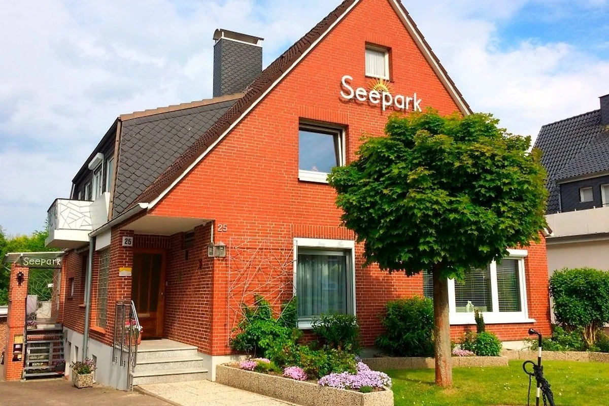 Der Seepark ist in leichter Hanglage zwischen der Christian-Westphal-Strasse und dem Kurpark eingebettet. Die Wohnung Backbord erreichen Sie durch den ebenerdigen Eingang auf der Garten- und Kurparkseite des Hauses.