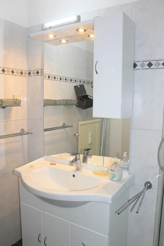 Die Aufteilung und Lage der Wohnung direkt in der Fußgängerzone sind ideal. Allerdings ist die Wohnung für Senioren und Personen mit Mobilitätseinschränkungen ungeeignet oder nur bedingt geeignet. Von der Tiefgarage bis zur Wohnung sind es 50 Stufen über eine sehr steile Treppe. Das Schlafzimmer ist sehr klein, der Abstand zwischen Bett und Wand ist so gering, dass man sich nur seitwärts bewegen kann.