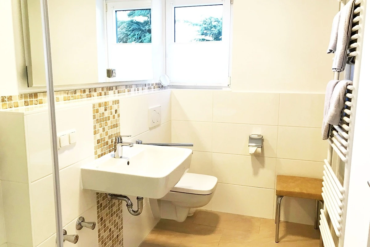 Zur Wohnung gehört ein PKW-Stellplatz auf dem Grundstück. Für mitgebrachte Fahrräder oder Bollerwagen gibt es einen gemeinschaftlichen Abstellplatz. Im Keller haben Sie die Möglichkeit Wäsche gegen Gebühr zu waschen und zu trocknen. Der Garten bietet einen wunderschönen Blick in den Kurpark. Der grosse tolle Spielplatz direkt im Kurpark nebenan ist bei allen kleinen Gästen der grosse Hit.