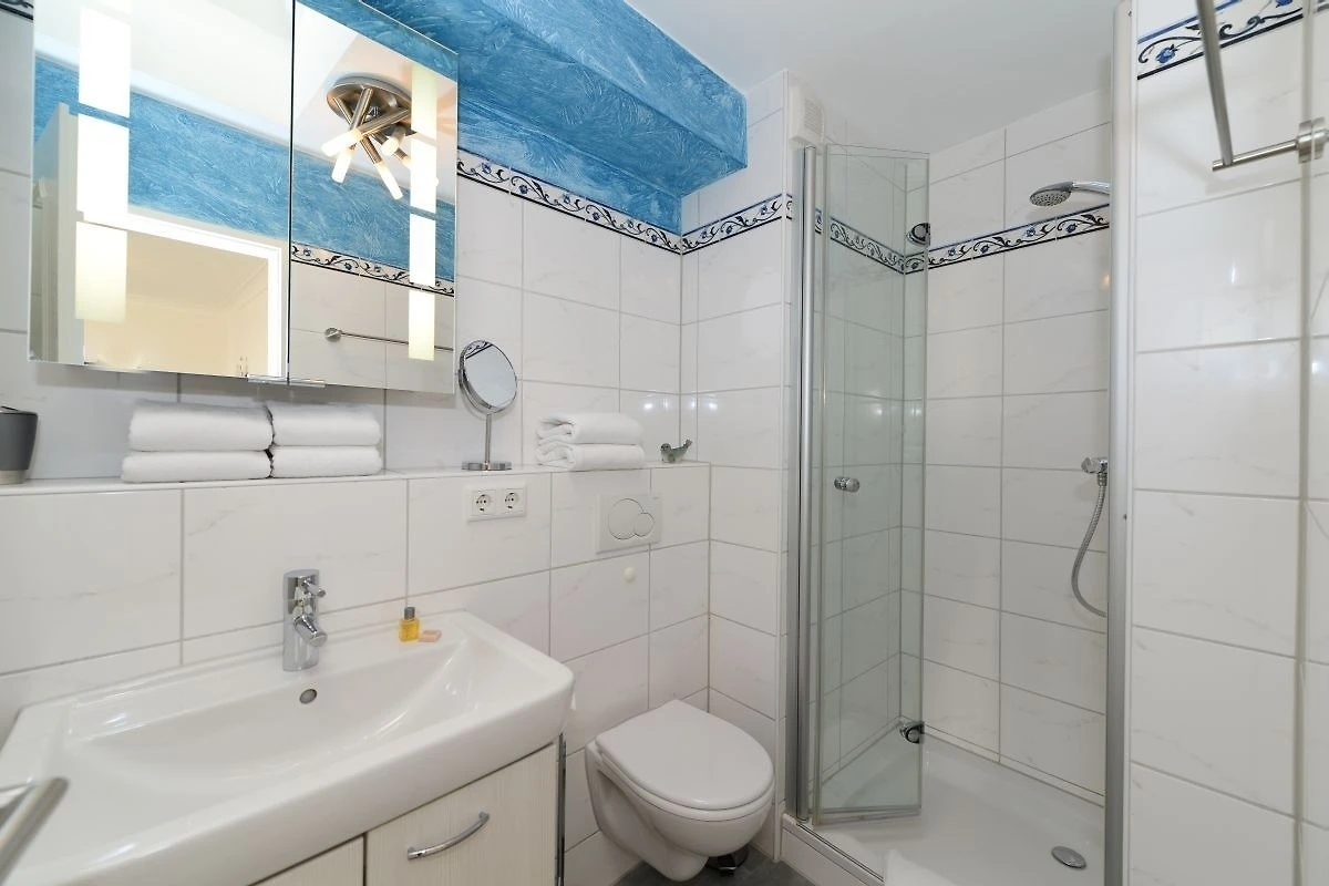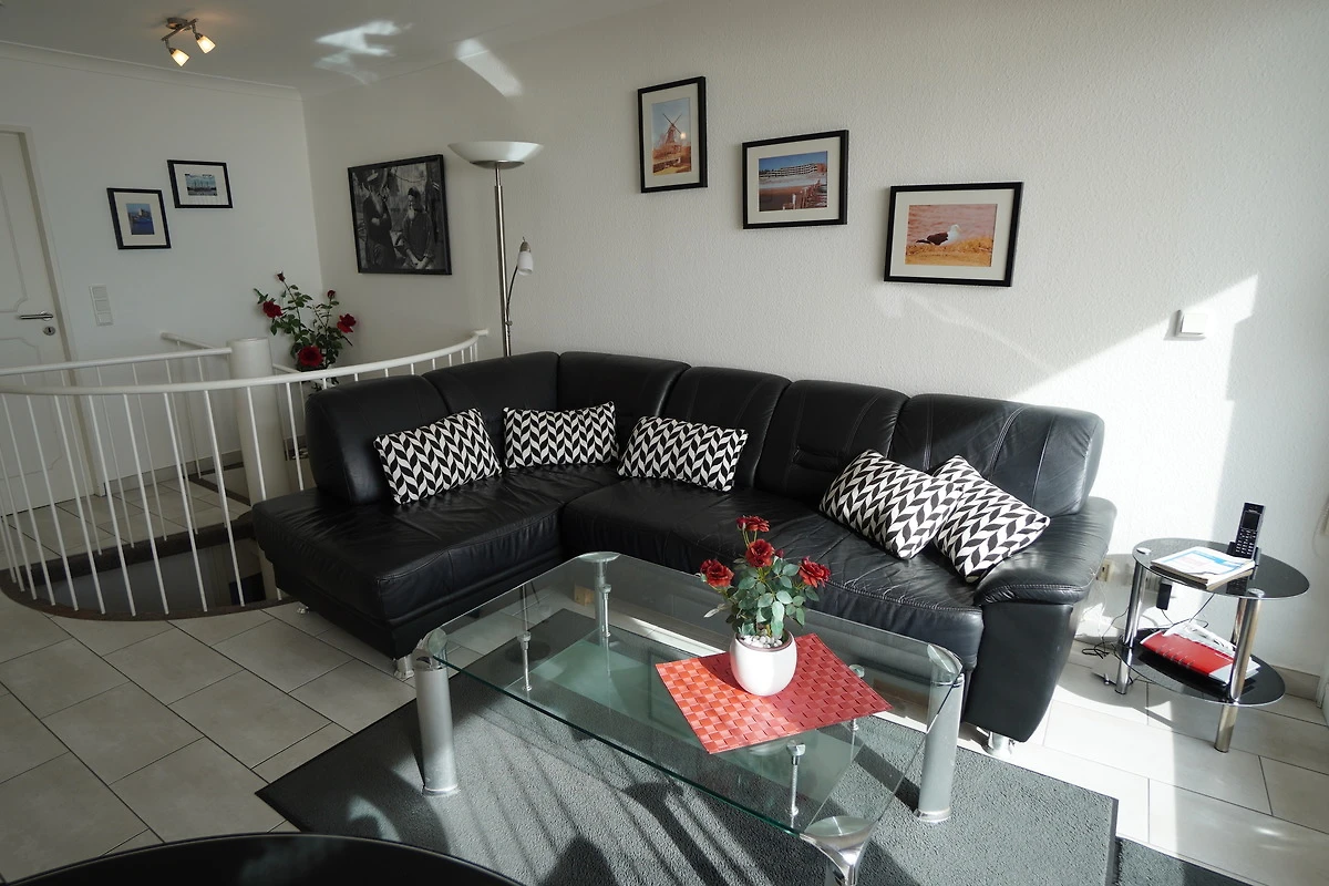 Die modern eingerichtete Ferienwohnung D6a erreichen Sie vom hellen Vorflur über eine Wendeltreppe.