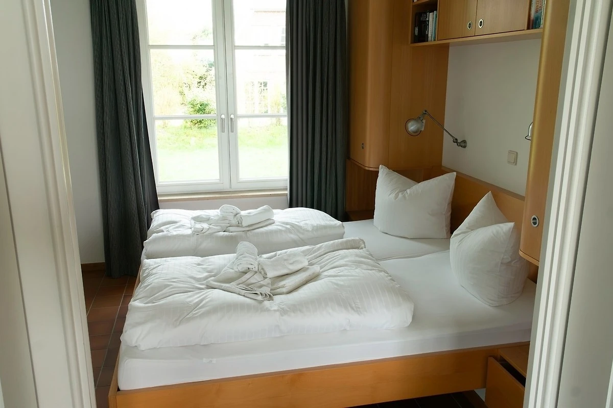 Hochwertige Betten in Komfortgrösse (180 x 210 cm) sorgen für erholsame Nächte und die geräumigen Kleiderschränke bieten viel Platz für Ihre Urlaubsgarderobe.