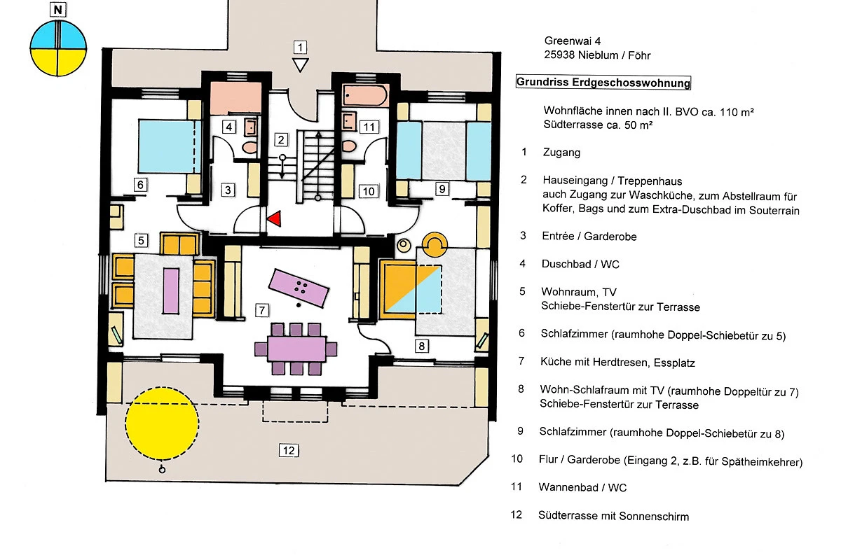 Einer sehr schöne Wohnung mit guter Ausstattung vor allem in der Küche. Die Wohnung ist sehr geräumig, hat zwei vollständig ausgestattete Bäder, zwei Wohnräume und zwei Schlafräume. Die Terrasse ist auch gut zu nutzen. Die Gegend hier in Goting ist besonders ruhig. In 5 - 10 Minuten ist man an der Bushaltestelle, man kann zu Fuß innerhalb von 20 Minuten nach Nieblum zu den Cafes und Restaurants. Der Strand ist ca. 10 bis 15 Minuten entfernt. Ein Strandkorb gehört auch zur Wohnung - was will man mehr? Eine kleine Aufwertung der Wohnung wären noch Fliegengitter wenigstens an einigen Fenstern. Mit Stechkmücken hatten wir zwar zum Glück nicht viel zu schaffen, aber allerlei andere Fliegen und Falter waren ständige Besucher in der Wohnung. Einen Abstrich gibt es beim Service wegen der umständlichen Übergabe der Schlüssel, die eigens beim ImmoService in Wyk abgeholt und zurückgegeben werden müssen. Warum geht das nicht mit einem kleinen Schlüsselsafe oder einer ähnlichen Lösung?