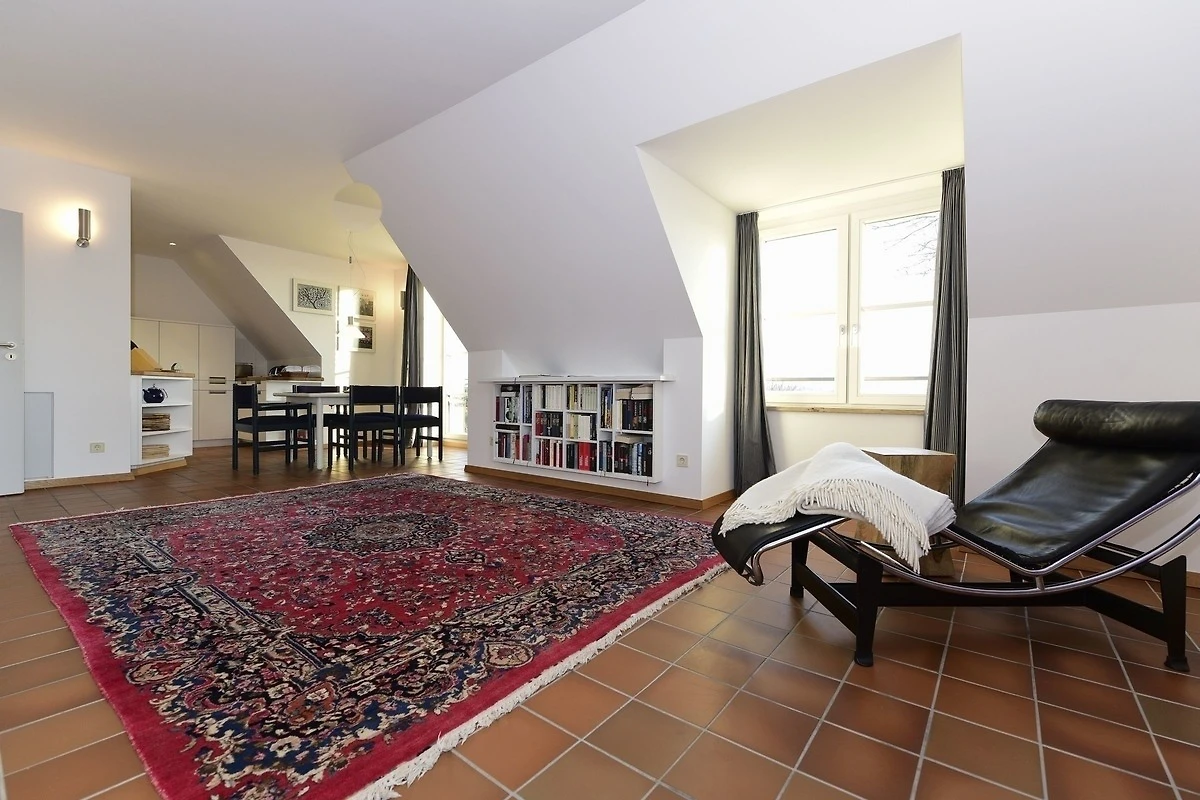 Das gemütliche Wohnzimmer mit hochwertigen Möbeln, offenem Kamin und kleiner Bibliothek lädt zu entspannten Abenden ein. Beginnen Sie den Tag mit einem Frühstück auf dem Südbalkon und beobachten Sie bei klarer Sicht die Fähren auf dem Meer. Die offene, voll ausgestattete Küche mit grossem Essbereich ist ideal für gesellige Mahlzeiten.