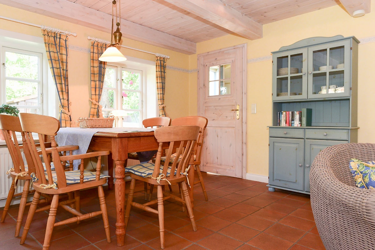 Geniessen Sie Ihren Urlaub in unserem einladenden Wohnbereich mit einer gemütlichen Sitzecke und einem Essbereich mit ausreichend Platz - perfekt für entspannte Stunden mit Familie oder Freunden.