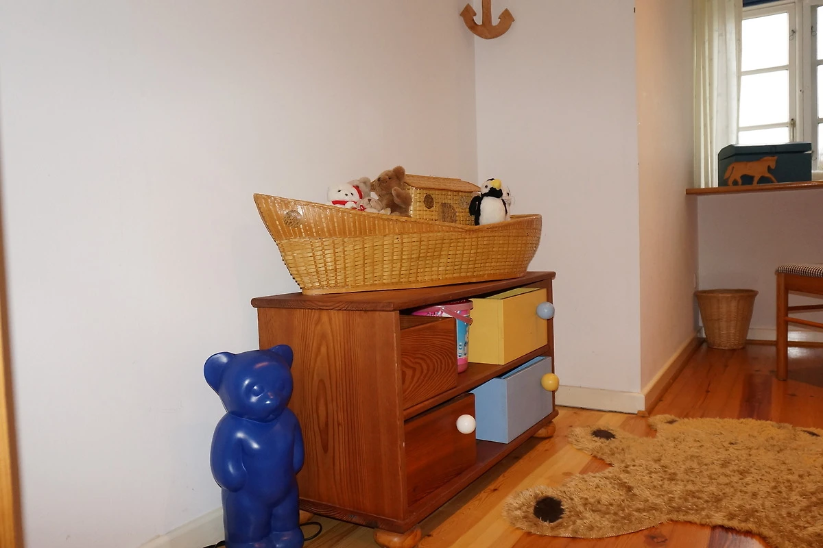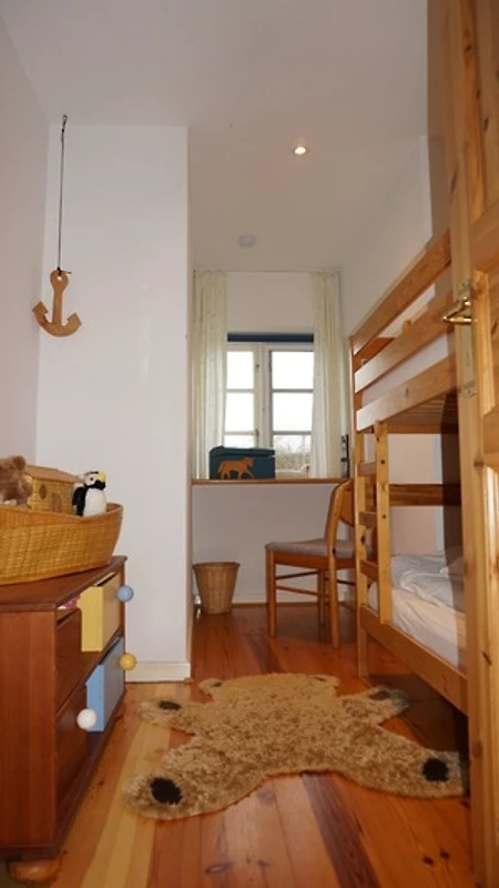 Im Obergeschoss erwarten Sie drei geräumige Schlafzimmer – ideal für Familien oder Freunde. Das Elternschlafzimmer mit Doppelbett und eigenem Duschbad sorgt für Ruhe und Komfort, während das zweite Schlafzimmer mit Doppelbett und Kleiderschrank sowie das gemütliche Kinderzimmer mit Etagenbett und Stauraum für erholsame Nächte sorgen. Ein weiteres Badezimmer im Obergeschoss rundet das Angebot ab.