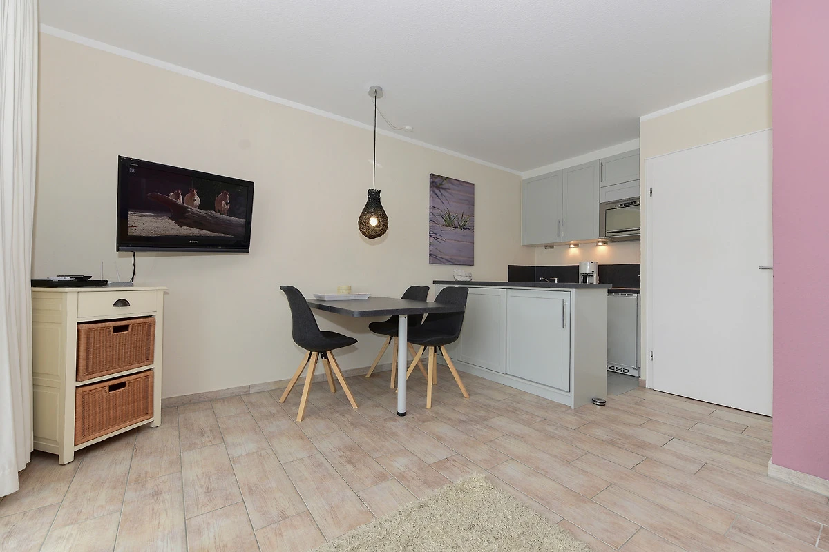 Die Wohnung ist gut für 2 Personen geeignet. Zu viert wird es eng. Und im Wohnraum klappert bei Wind gelegentlich der Dunstabzug, was den Schlaf auf dem Schlafsofa stören kann. Die Einrichtung ist schön und die Küche gut ausgestattet.