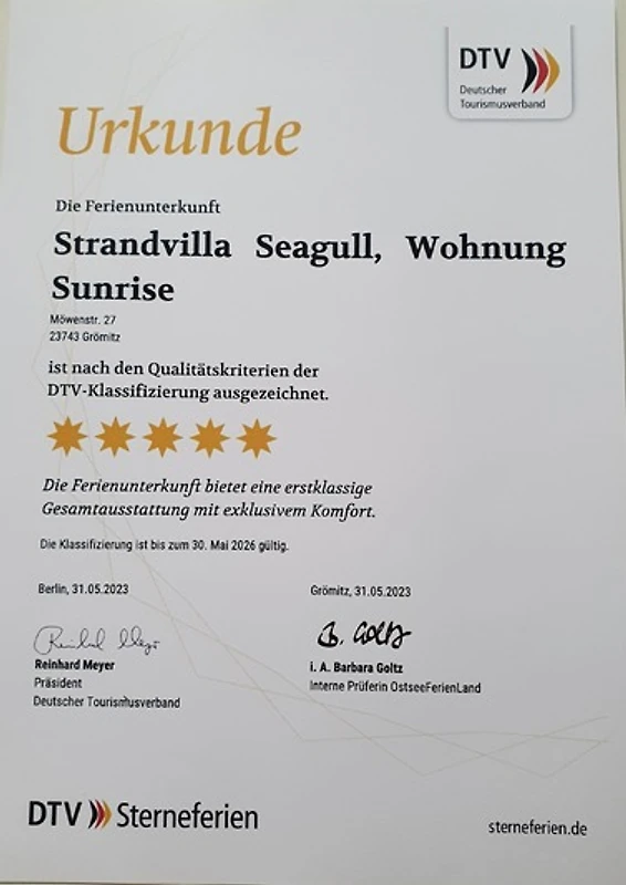 «"Strandvilla Seagull - Whg.» erreicht eine Urlauberbewertung von 5 (Bewertungsskala: 1 bis 5) bei 1 abgegebenen Bewertung.