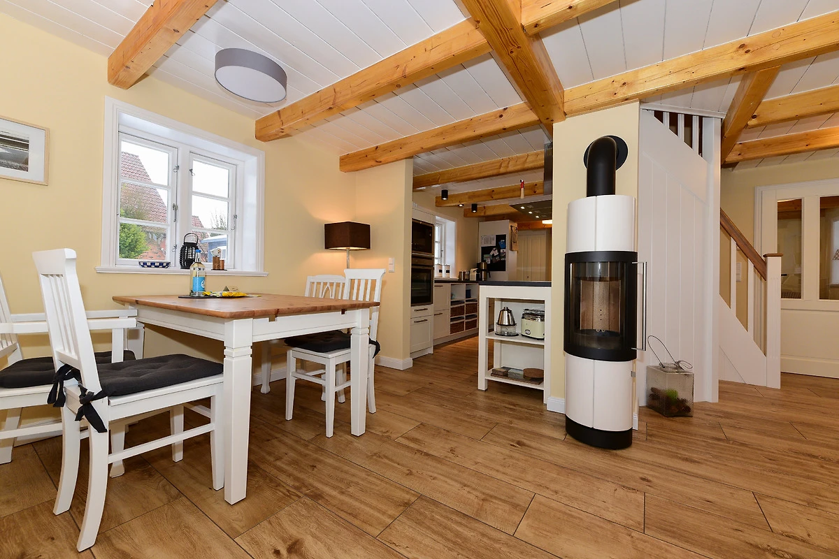 Der offene Essbereich bietet genügend Platz für gemeinsame Mahlzeiten und gesellige Spieleabende.